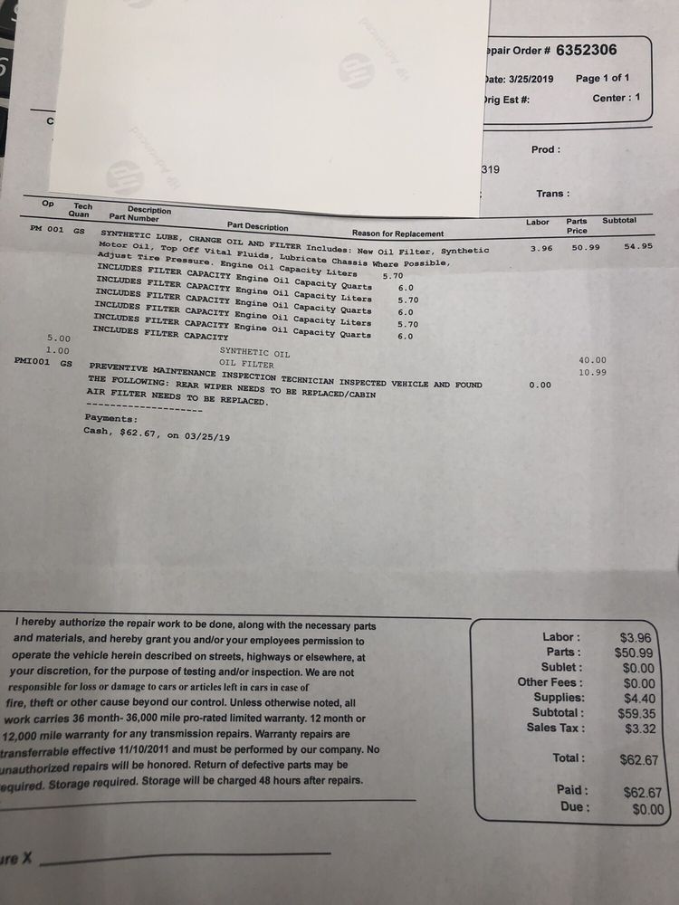 Great experience, easy process to get emissions taken care of. Friendly staff got me in and out for the service even with a full garage.