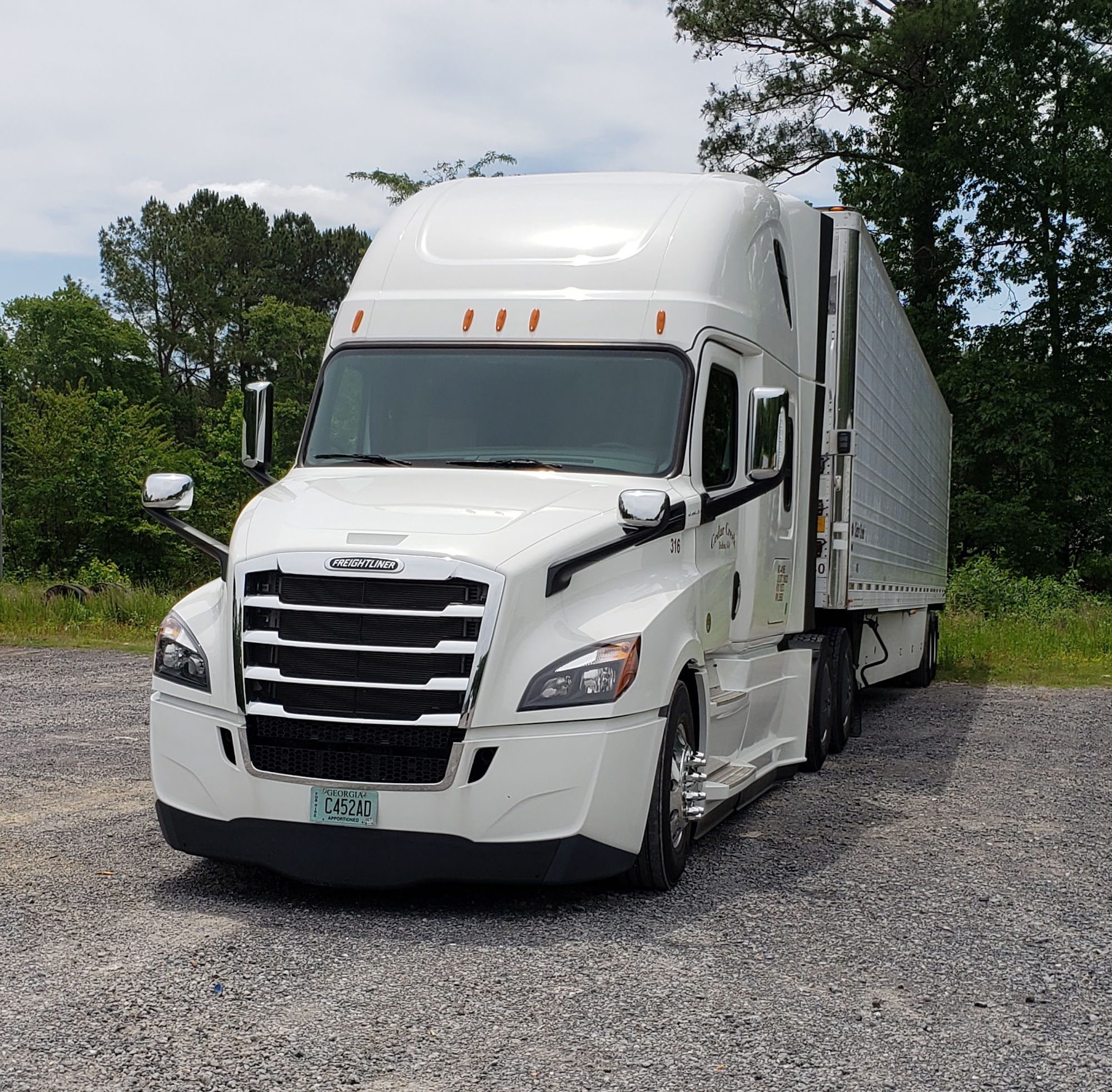 Cedar Creek Trucking, based in Dalton, GA, is a refrigerated trucking outfit providing exceptional truckload services from the southeast to points both west and northwest. All freight we haul is temperature-controlled with the average age of our power units being between 6-7 months. We have recently updated every power unit to new Cascadias and Cascadia Evolutions. Our drivers are known as experts at maintaining both the securement and temperature requirements of a variety of agricultural goods. If you’re looking for a reliable, dedicated truckload carrier, make us your first call.