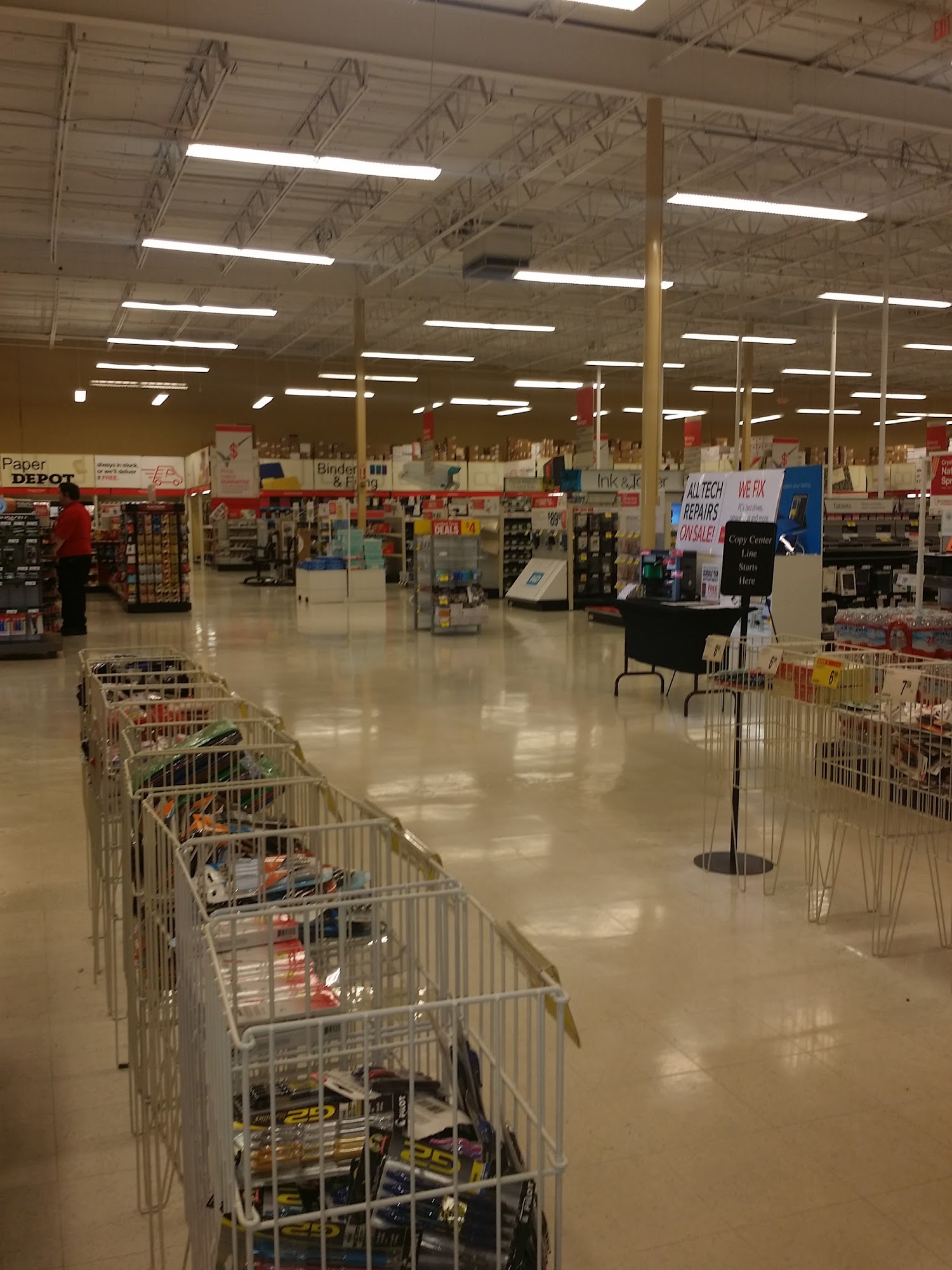 Office Depot is a reliable destination for business and home office supplies, offering a wide range of products including paper, ink, furniture, technology, and cleaning supplies. The store also provides business services like custom printing, shipping, and tech support, with associates available to help customers navigate their needs. Many customers have praised the excellent customer service, highlighting employees like Sandy, who is noted for her professionalism and personal touch, and Kevin, who is described as welcoming and cheerful. The photo shop team has also been recognized for their helpfulness, especially in providing advice for resumes and equipment purchases. However, some customers have experienced challenges, particularly with the faxing services. Issues included delays and a lack of attention to detail, resulting in important documents not being sent as required. While some customers had positive interactions, others felt disappointed and suggested that training for staff could be improved to enhance service quality. Overall, Office Depot is appreciated for its product offerings and helpful staff, but there are areas for improvement in service consistency, particularly in critical tasks like faxing. The store now offers curbside pickup for online orders, making it convenient for those looking to save time.