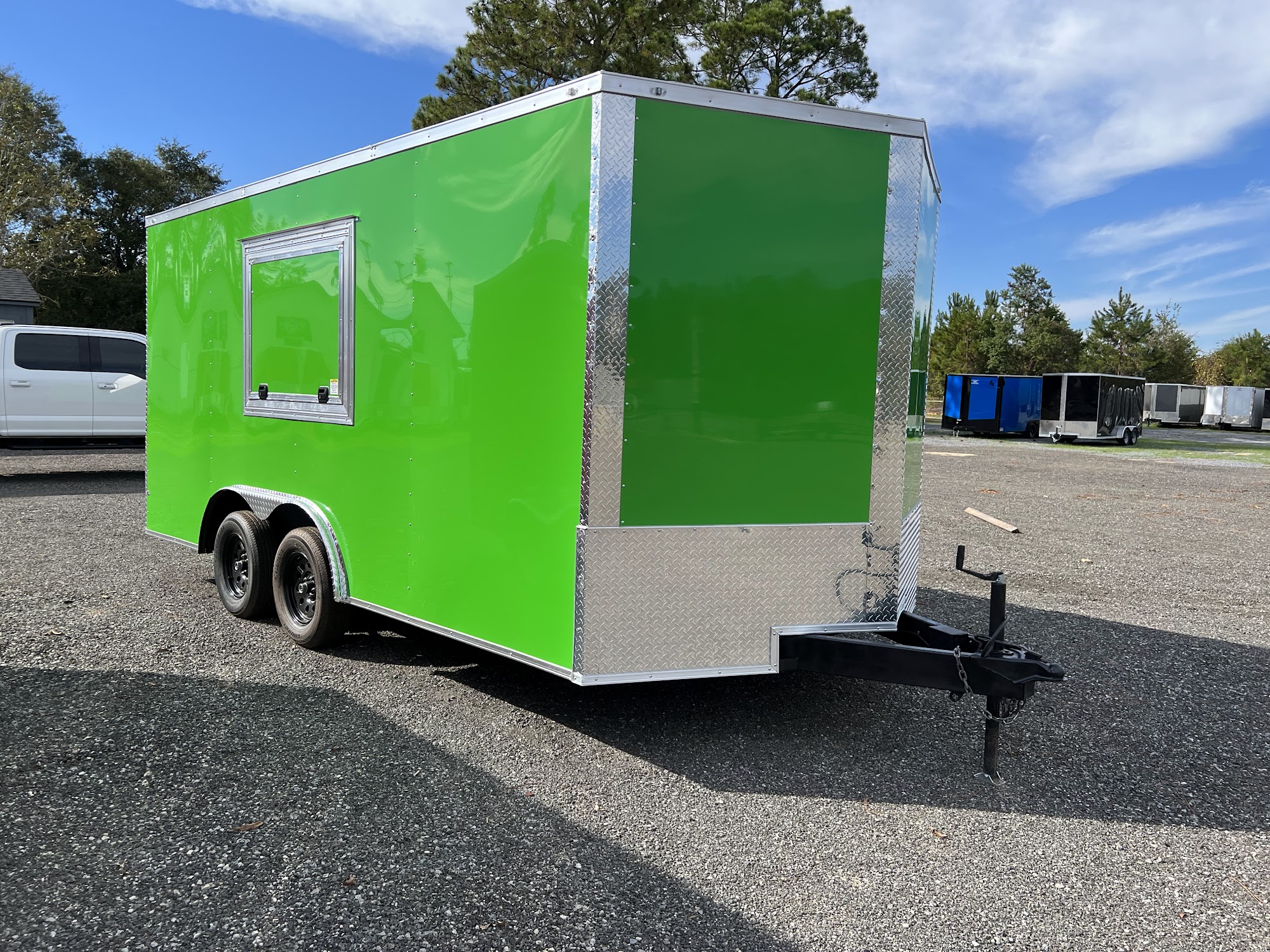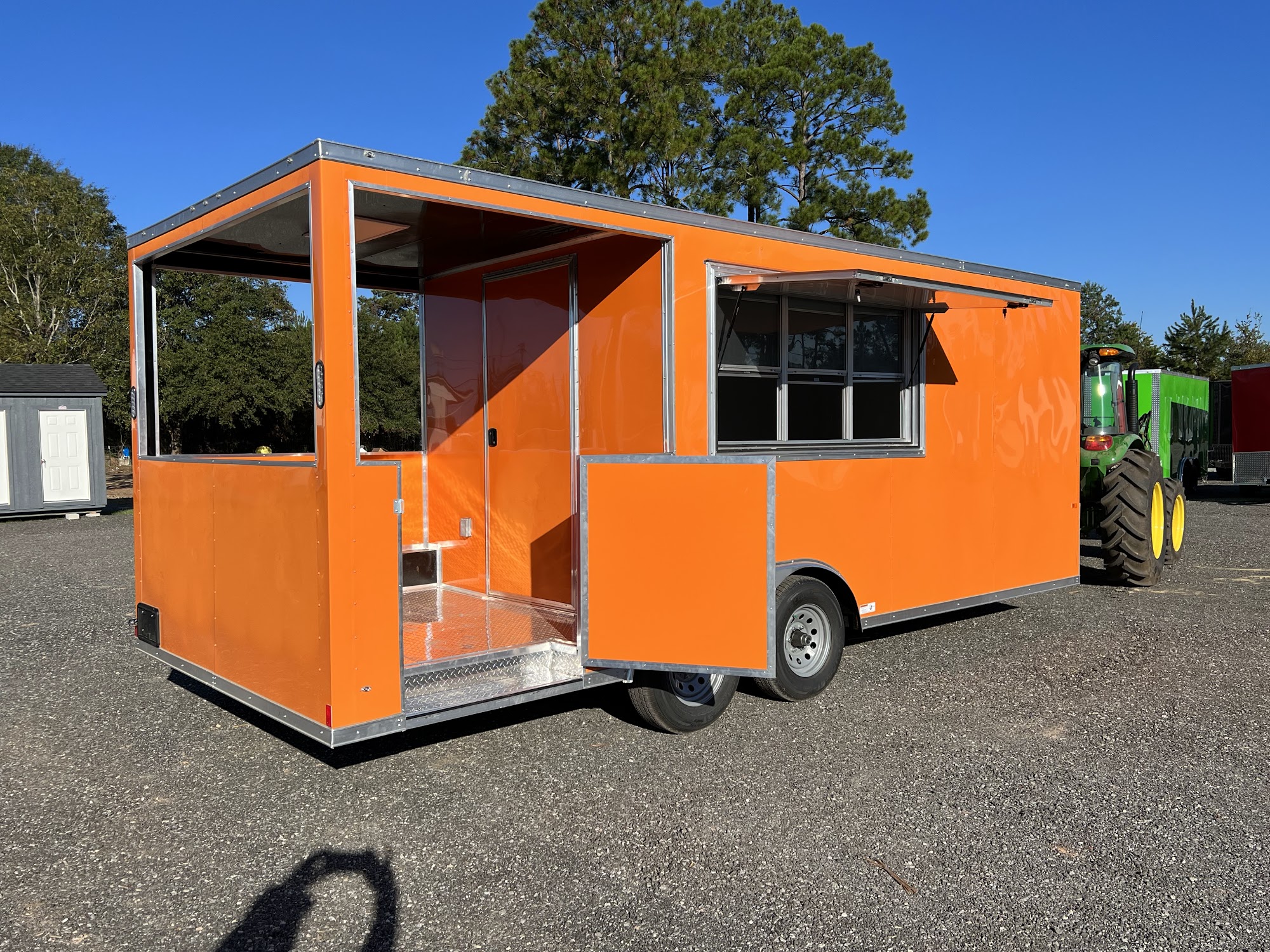 Circle BB Trailer Sales is a trailer dealer located in Douglas, Georgia, within 3 miles of 10 trailer manufacturers. They offer a wide range of trailer options, including enclosed car haulers, BBQ trailers, mobile kitchens, concession trailers, goosenecks, and flatbeds. The company is known for its good people, smooth and easy purchasing process, and excellent customer service. Customers have praised the professionalism of the staff, particularly Miss Dori and the two ladies at the factory, who ensured a safe journey. The company serves 48 states and delivers nationwide, providing a convenient and reliable service for those in need of a trailer.