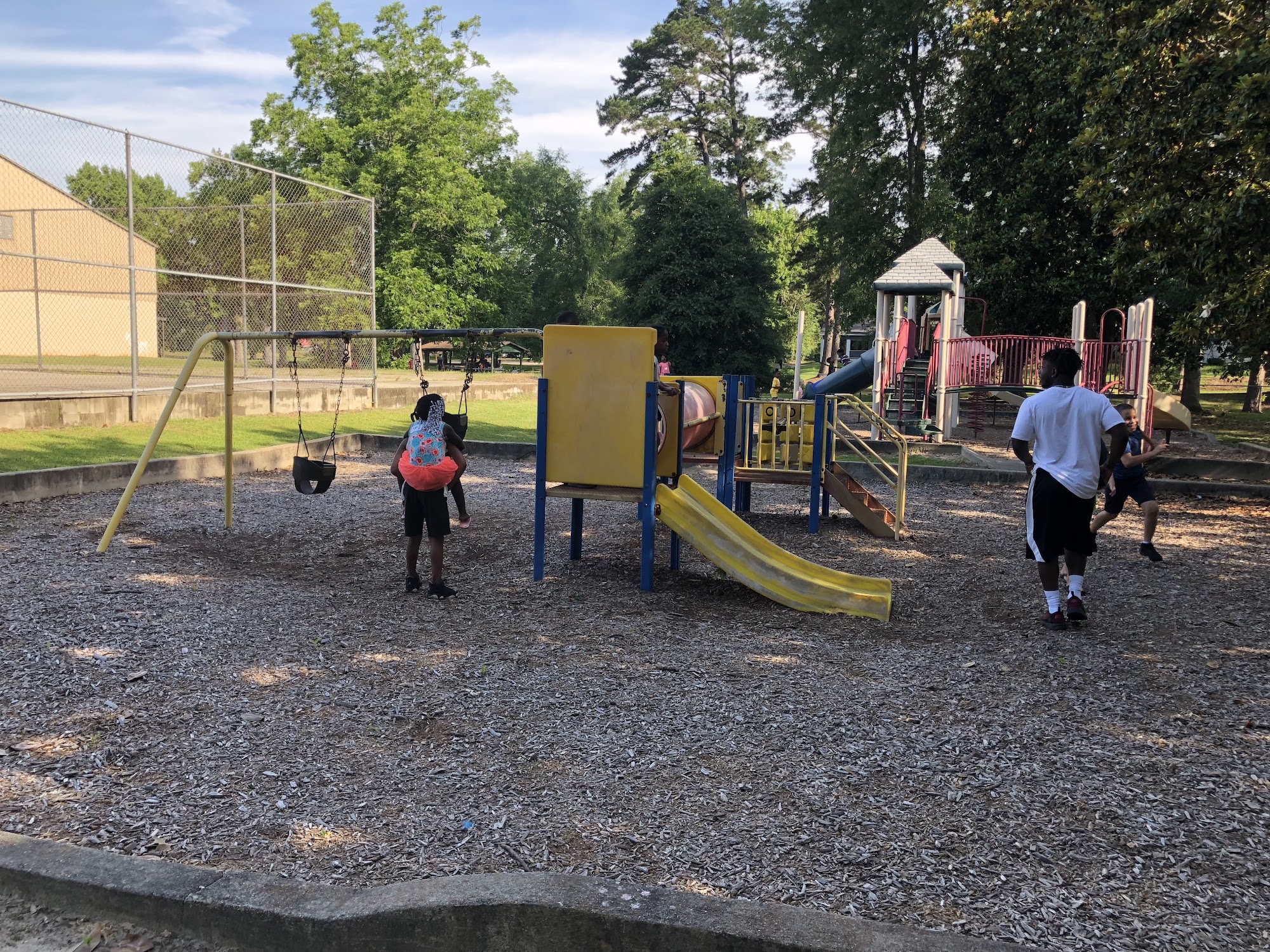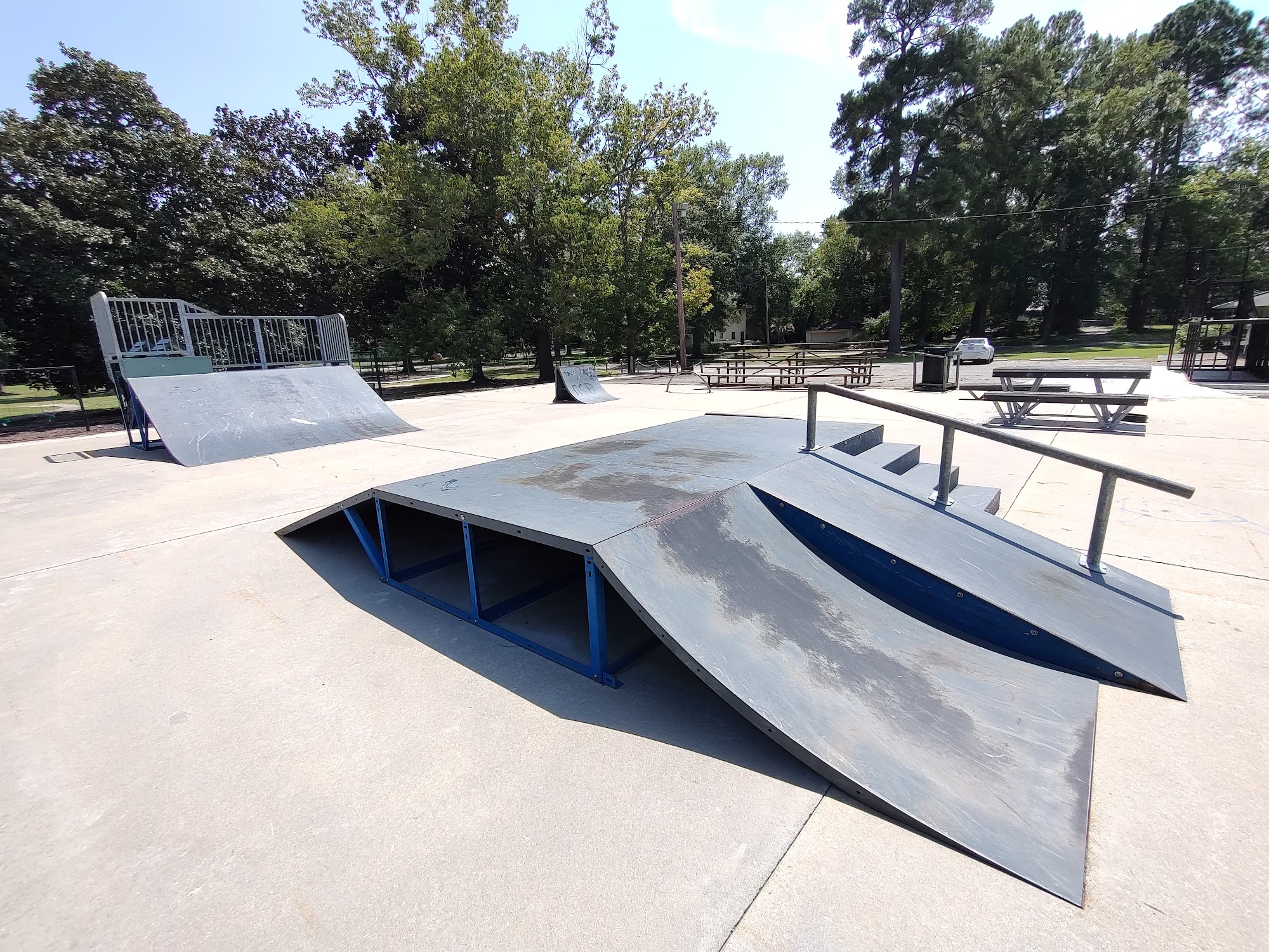 Stubbs Park is a solid community space with plenty of room and parking. It offers a variety of amenities including skate ramps that are mostly smooth and skate well for transition and street skaters, a playground, swings, a tennis court, and a gym for basketball. There is a recently paved walk area, picnic benches with some covered tops, and nearby trash cans. The park hosts community events, such as giveaways and National Night Out, and is described as quiet and clean. It is dog-friendly and has restrooms inside the gym. A noted downside is the lack of a good space for cooking or meal prep during events.