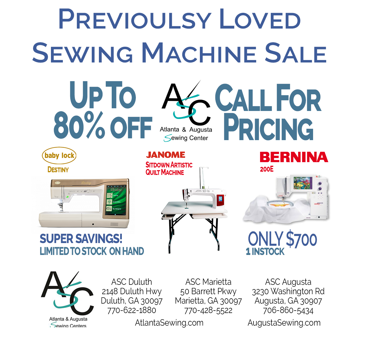 Atlanta Sewing Center (ASC) is a top sewing store in Atlanta, offering a wide range of sewing machines, fabrics, tools, and classes. The store features new showrooms and carries the full line of Baby Lock and Bernina machines. Customers appreciate the friendly and helpful staff, who are always willing to assist and provide expert advice. Many reviews highlight the excellent customer service, with staff taking time to explain machine features and help troubleshoot issues. The store is praised for its large selection of high-quality quilting and sewing fabrics, making it a favorite spot for sewing enthusiasts. Several customers have purchased machines from ASC and commend the quality and service they received. Staff members are recognized for their kindness, patience, and dedication, making each visit a positive and educational experience. Some customers have expressed a desire for more in-person training, especially for new machine models. Overall, Atlanta Sewing Center is valued as a friendly, helpful, and well-stocked sewing destination that caters to both beginners and advanced sewists.
