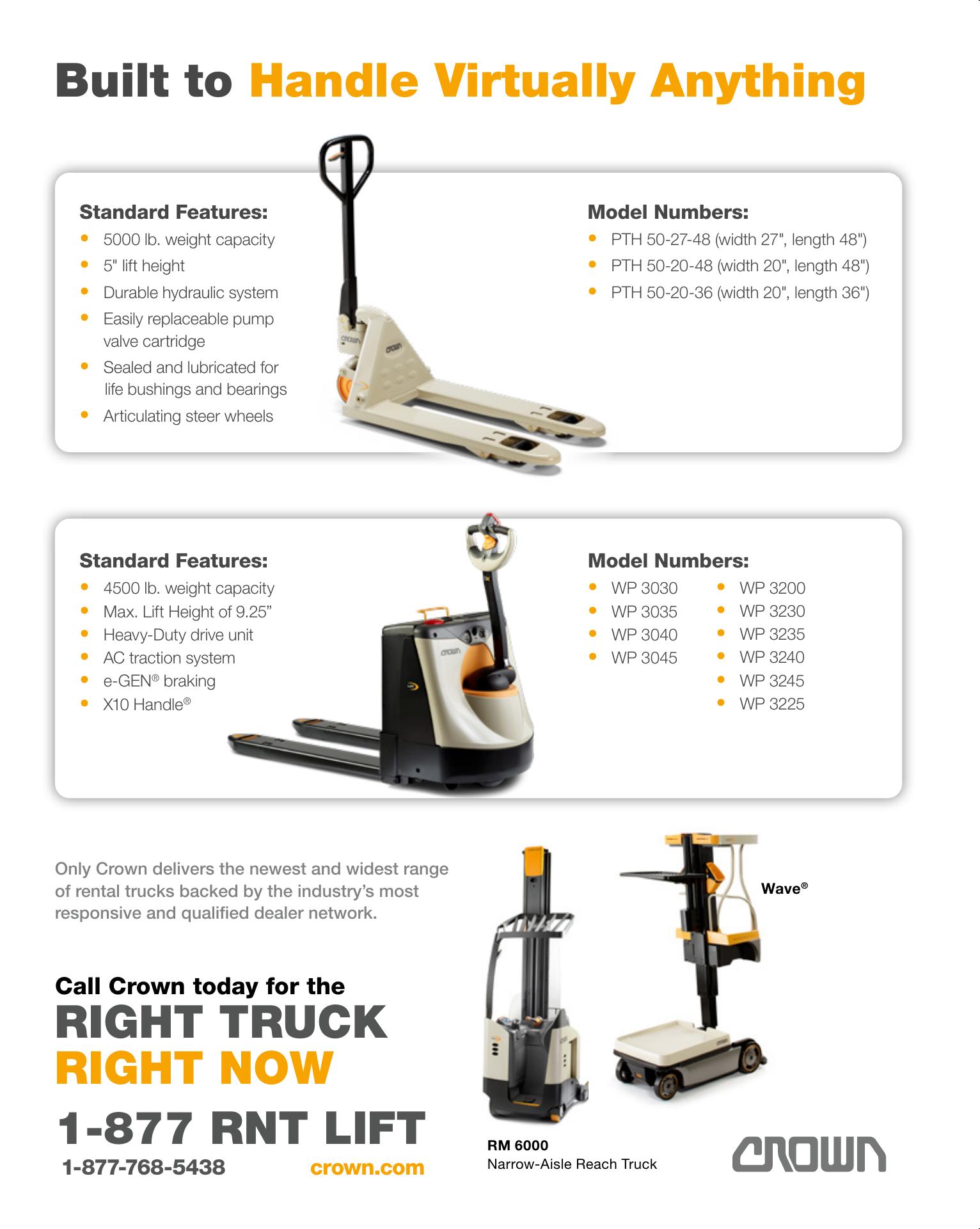 Crown is one of the world’s largest material handling companies with a reputation for award-winning product design, advanced engineering and technology, and excellent after-sale service. Crown’s business philosophy utilizes vertically integrated processes to design, manufacture and distribute forward-thinking, innovative solutions that improve customers’ productivity and operating efficiency. Crown produces a broad range of forklifts as well as automation and fleet management technologies. To learn more about how Crown is redefining the future of material handling, visit our website today.