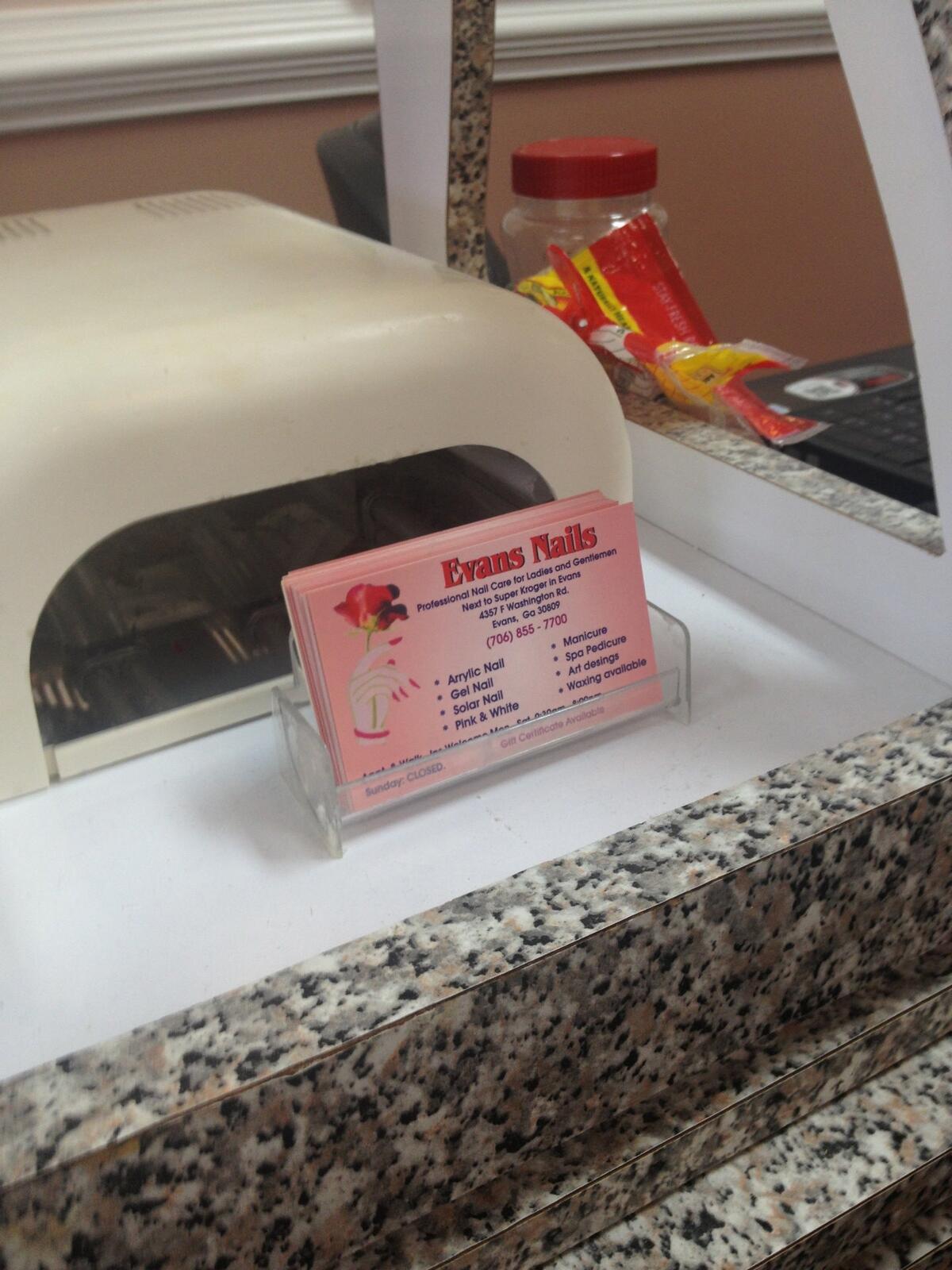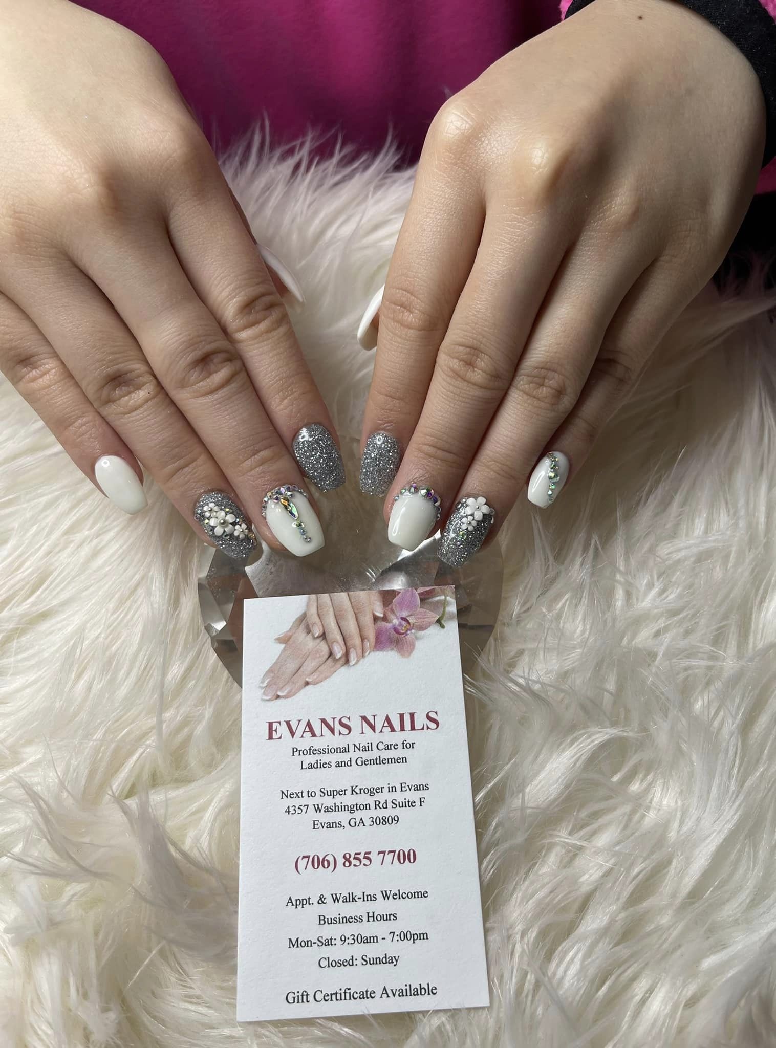 Evans Nails has been the premier nail salon for decades, offering you a wide range of styling services and products to give you the look you want. With an extensive selection and over 30 years of experience, we’ve got you covered for whatever you need. If there’s a wedding, party, or event in your future — or if you’re simply ready to get pampered — give us a call or visit today, and start relaxing and radiating with beauty!