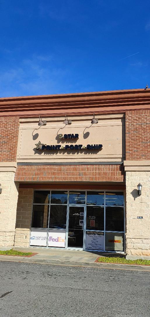 Five Star Print Post Ship is a locally owned business center specializing in full service commercial printing. We seek to provide each customer with a great experience. We design, we print and we ship. We offer professionally designed signs and banners, flyers, business cards and more. We also fax, rent mailboxes and provide notary signatures without all the unnecessary fees. We're also the only local business offering UPS, FedEx, DHL and USPS in one location. There is so much to experience, just come in and let us help you build and expand your brand. Welcome to South Fulton's #1 business center.