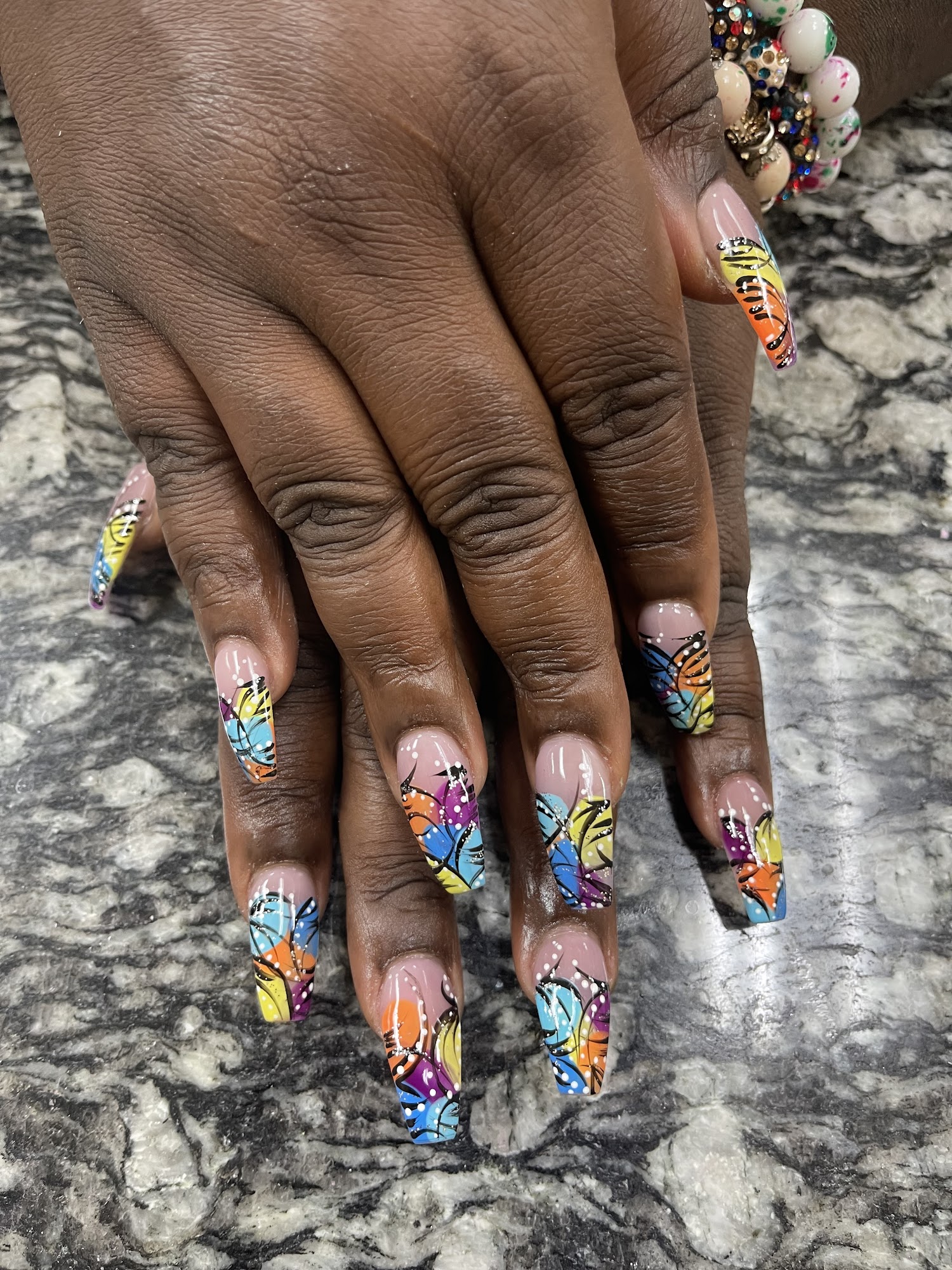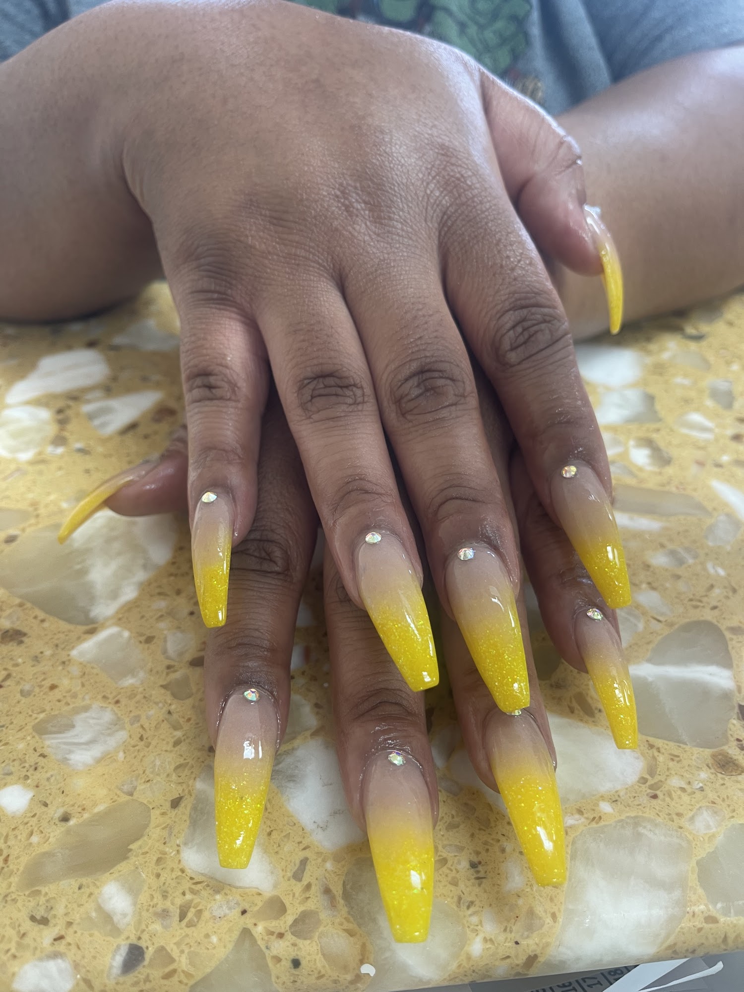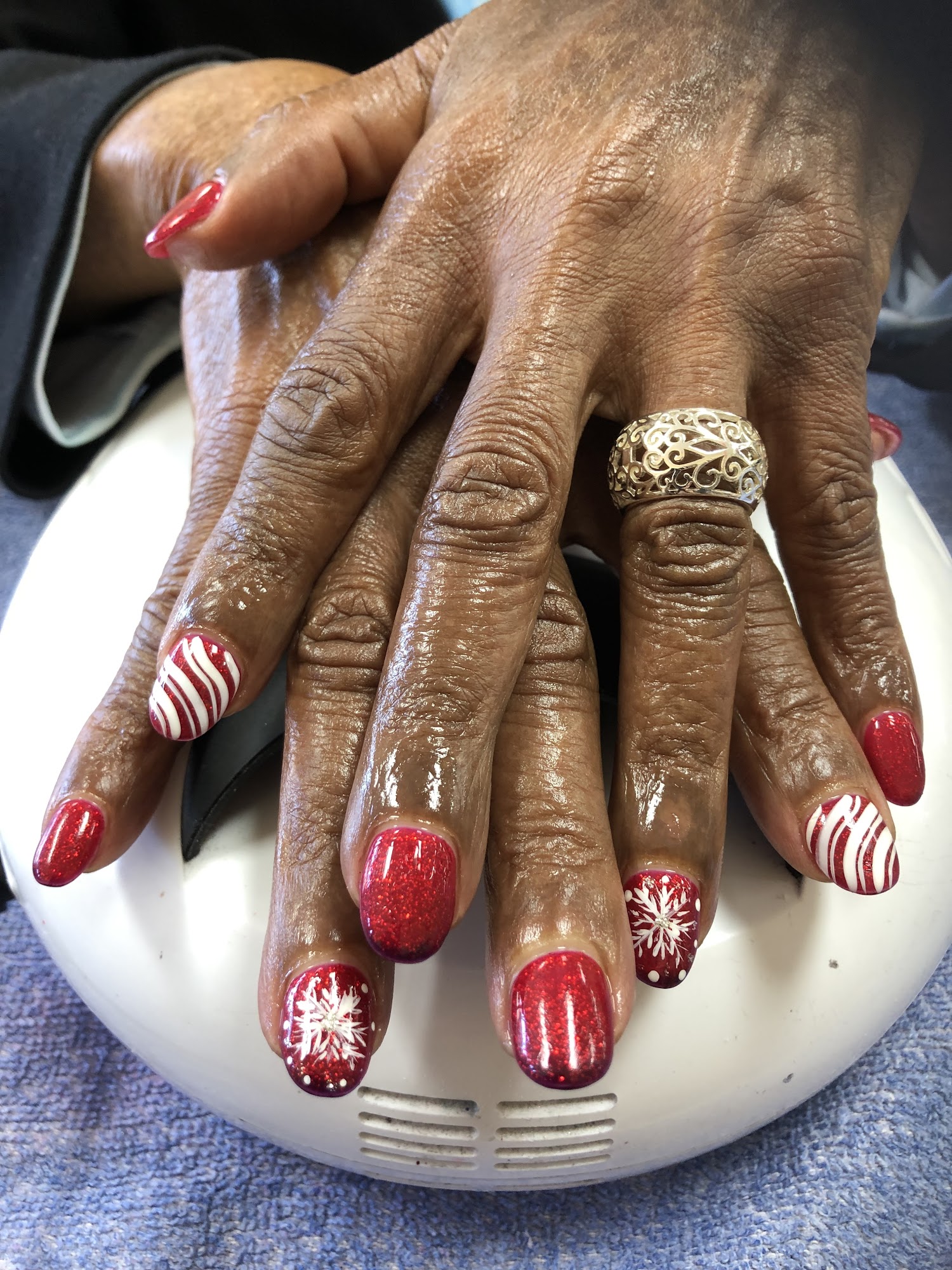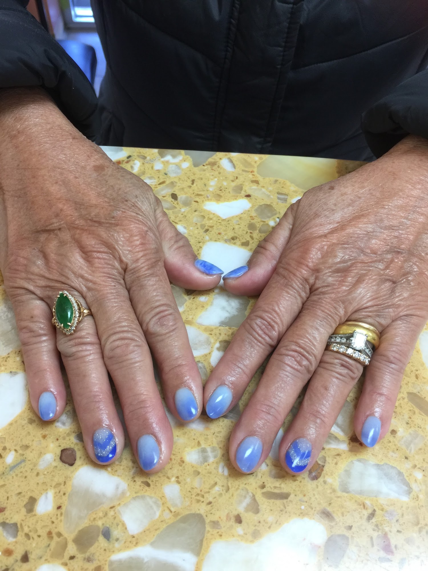 Full set on natural nails. Melanie was great!! She fixed what another salon didn’t do correctly. I will be back!