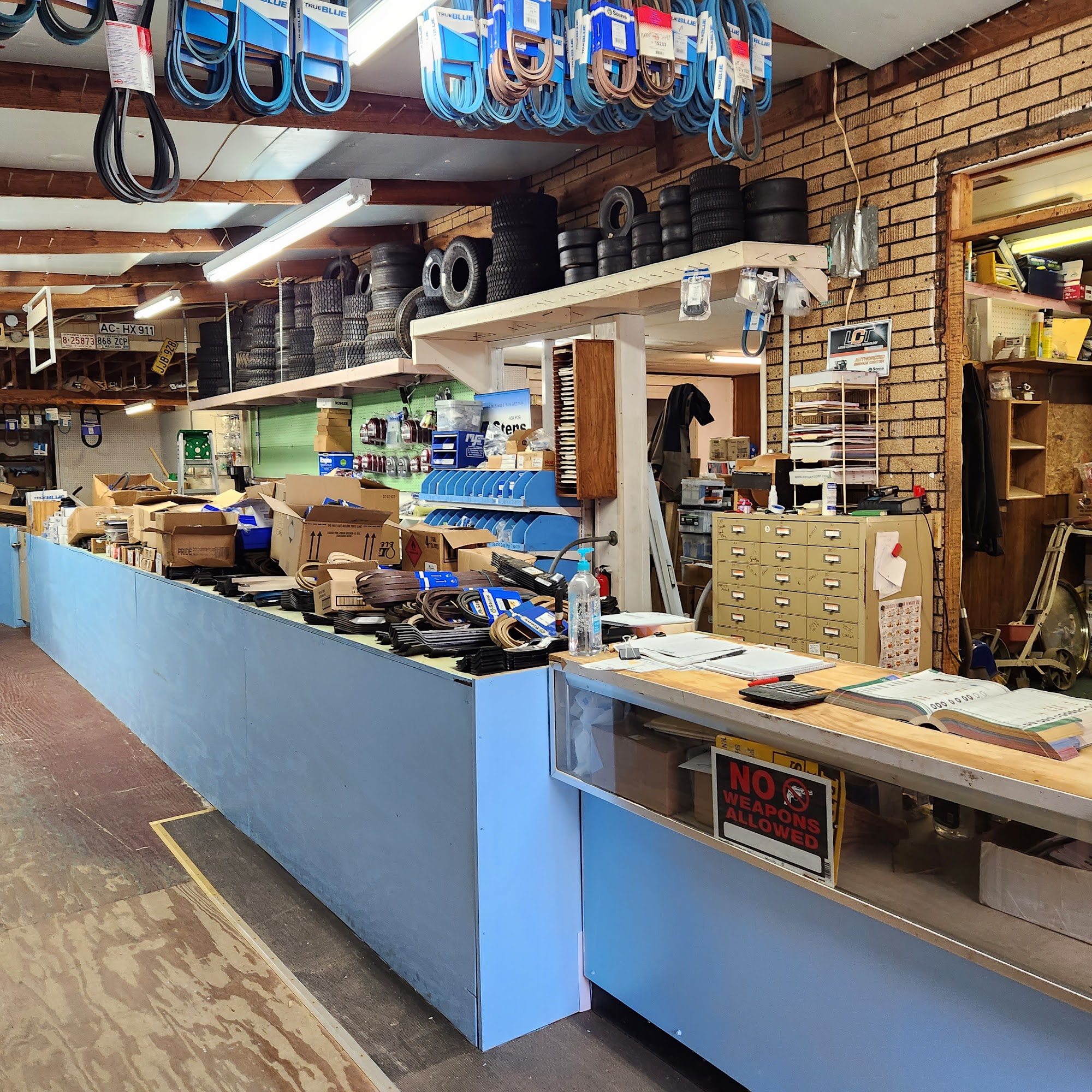 Bill and Gerald Merritt will keep you supplied with parts for your lawn equipment.Fitzgerald's store to keep your mower going.Mower parts from A to Z. Cutting Blades to Belts and more.
