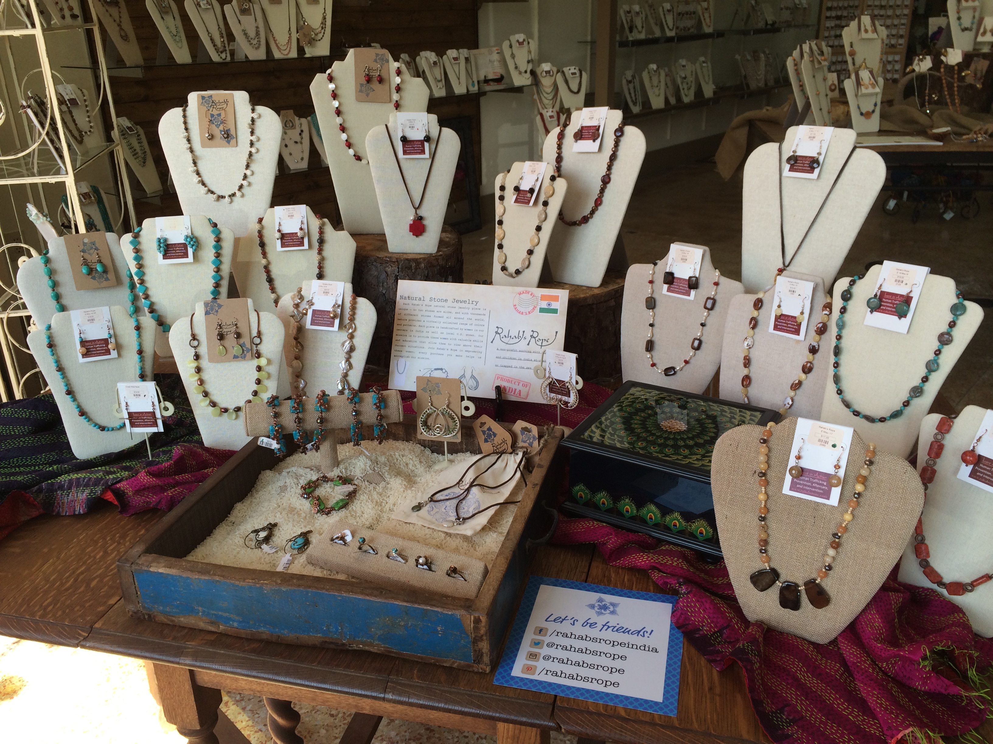 Rahab's Rope is a beautiful shop offering quality handmade clothing, jewelry, quilts, purses, and other unique items, all made in India. The store features bright colors and a variety of cultural products that make perfect gifts. Customers appreciate the shop's aesthetics and ethics, as 100% of sales go towards fighting human trafficking of women in India. Many visitors find themselves drawn to the wide selection, often leaving with items like earrings, bags, and notebooks. The friendly staff enhances the shopping experience, making it a favorite destination for locals and visitors alike. The store creates a welcoming atmosphere reminiscent of an international market, where shoppers can find high-quality, handcrafted items. Rahab's Rope not only provides beautiful products, but also supports an important cause by keeping women and children off the streets and offering education for at-risk families. With shipping options available, this store is a treasured gem in the community, making it easy for anyone to contribute to the mission while enjoying their purchases.