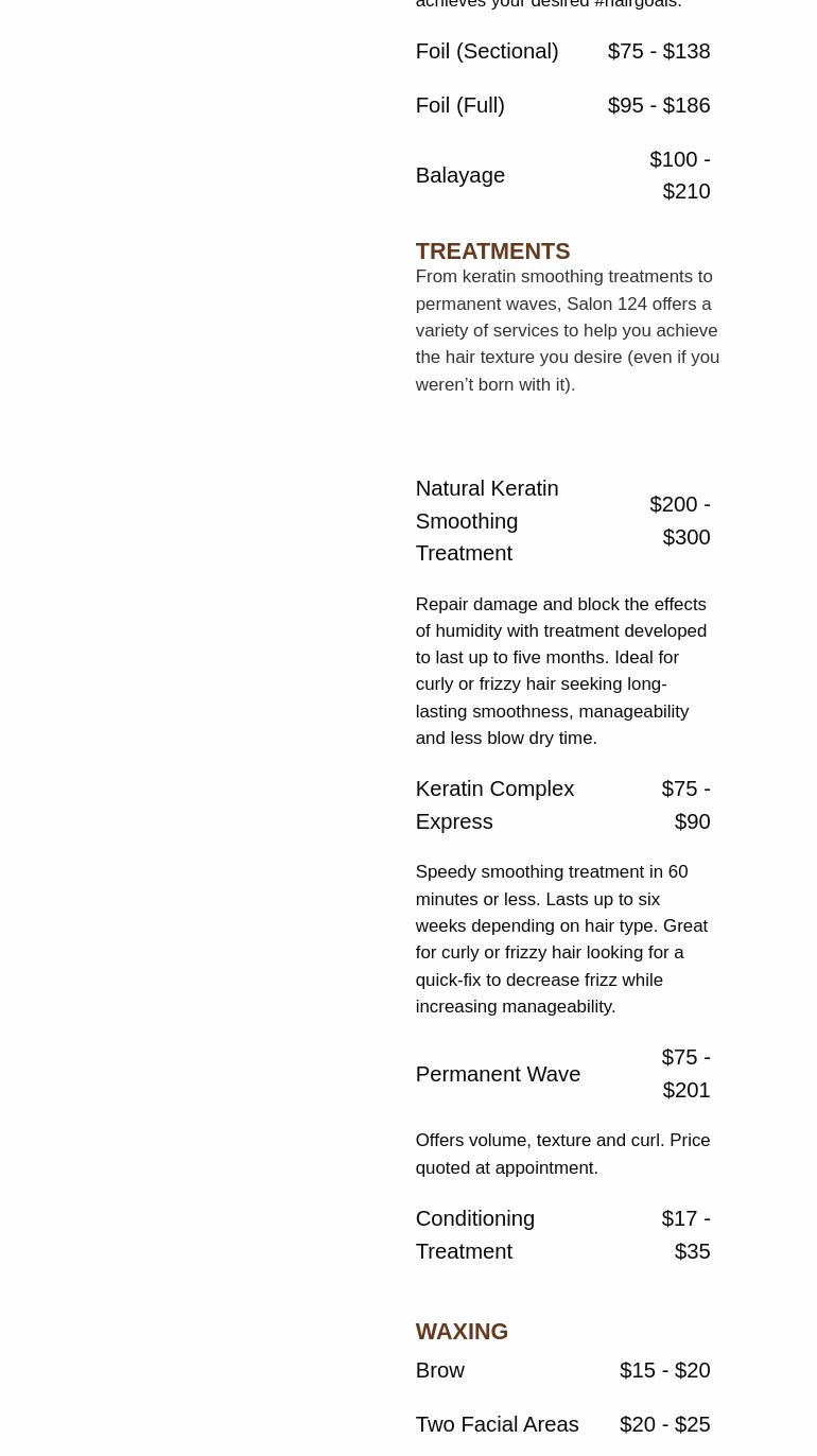 Founded on professionalism and sustained by education, since opening its doors in 1991, Salon 124 has helped change the perception of salons and salon professionals while raising the bar in professionalism and consistent service. With salons in Grayson, Hamilton Mill and Duluth (Sugarloaf Parkway), Salon 124 serves thousands of clients throughout the greater Atlanta area offering the ultimate experience to its clientele. Rest assured you are in the best of hands with Salon 124 stylists. Stylists at Salon 124 are continuously trained on new trends in cutting, hair coloring and keratin and smoothing treatments. A relaxing shampoo service and soft lighting guarantee the utmost relaxation during your salon experience.