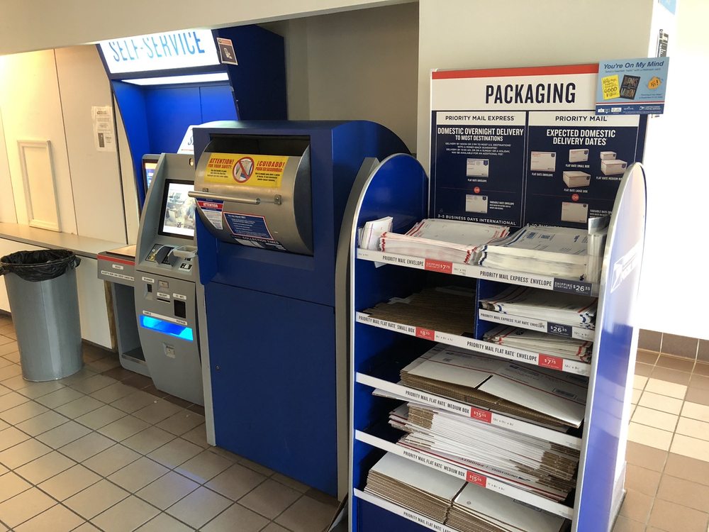 Wanted to add a comment that the lobby is open 24/7 and has a self-postage mail kiosk for envelopes, packages, and to purchase stamps.