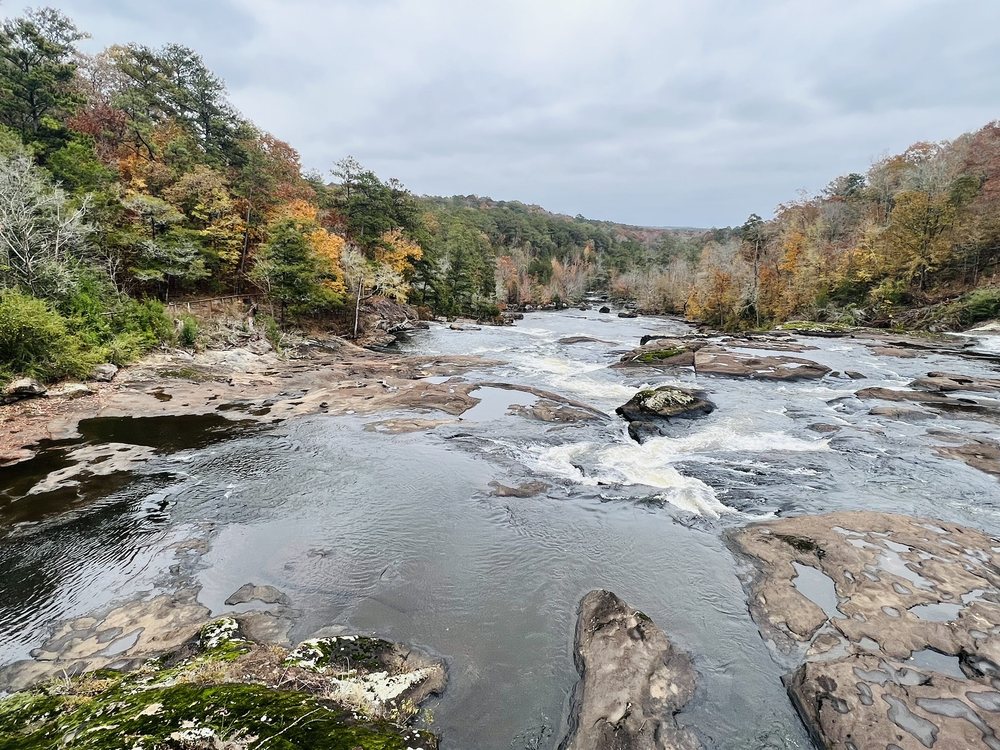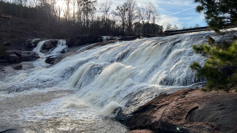High Falls State Park offers a beautiful and well-maintained natural retreat. The park features well-kept trails that follow the river, showcasing stunning rock formations and scenic views. Visitors can enjoy picnicking, a playground, and the opportunity to rent kayaks for exploring the water. The restrooms are clean, and the staff is friendly, making visitors feel at home. While the park may not be as large as some had hoped, it provides a peaceful and enjoyable experience for families and outdoor enthusiasts alike.