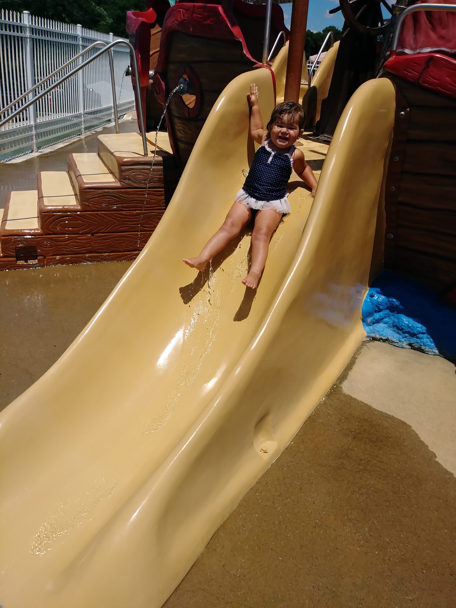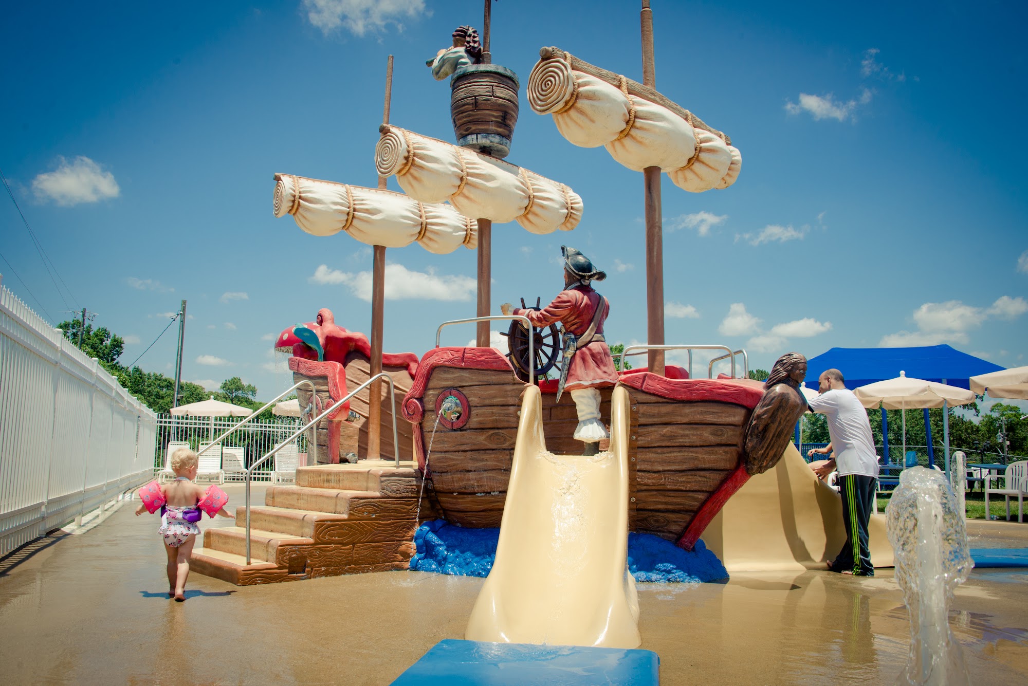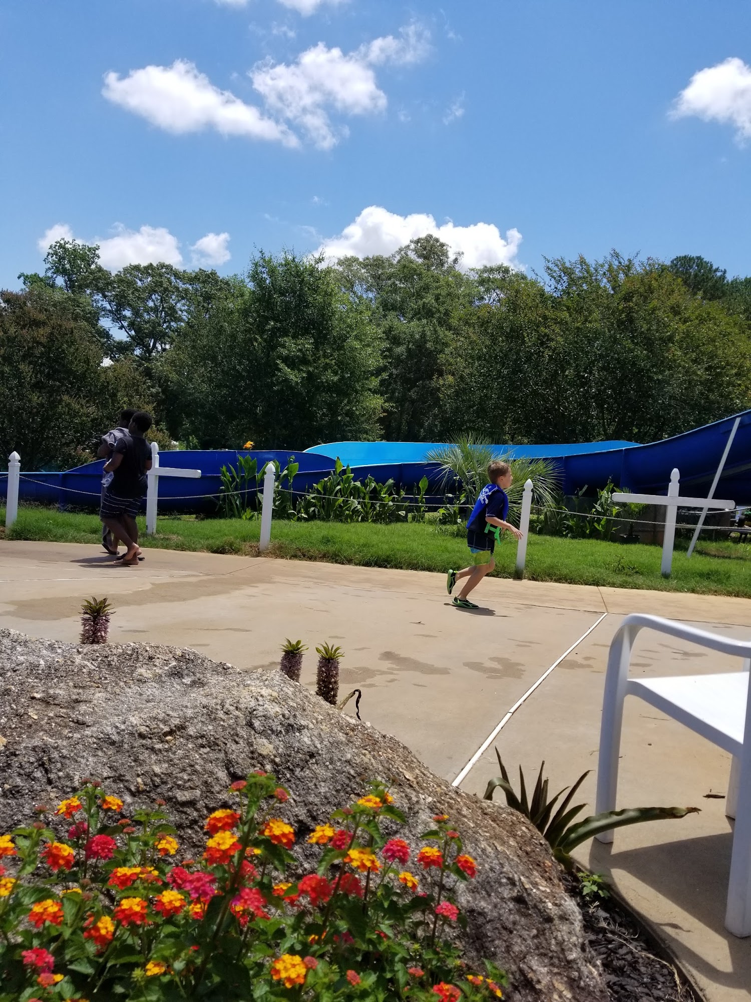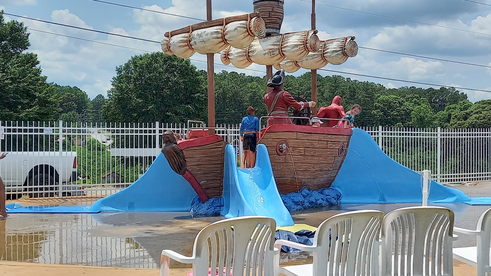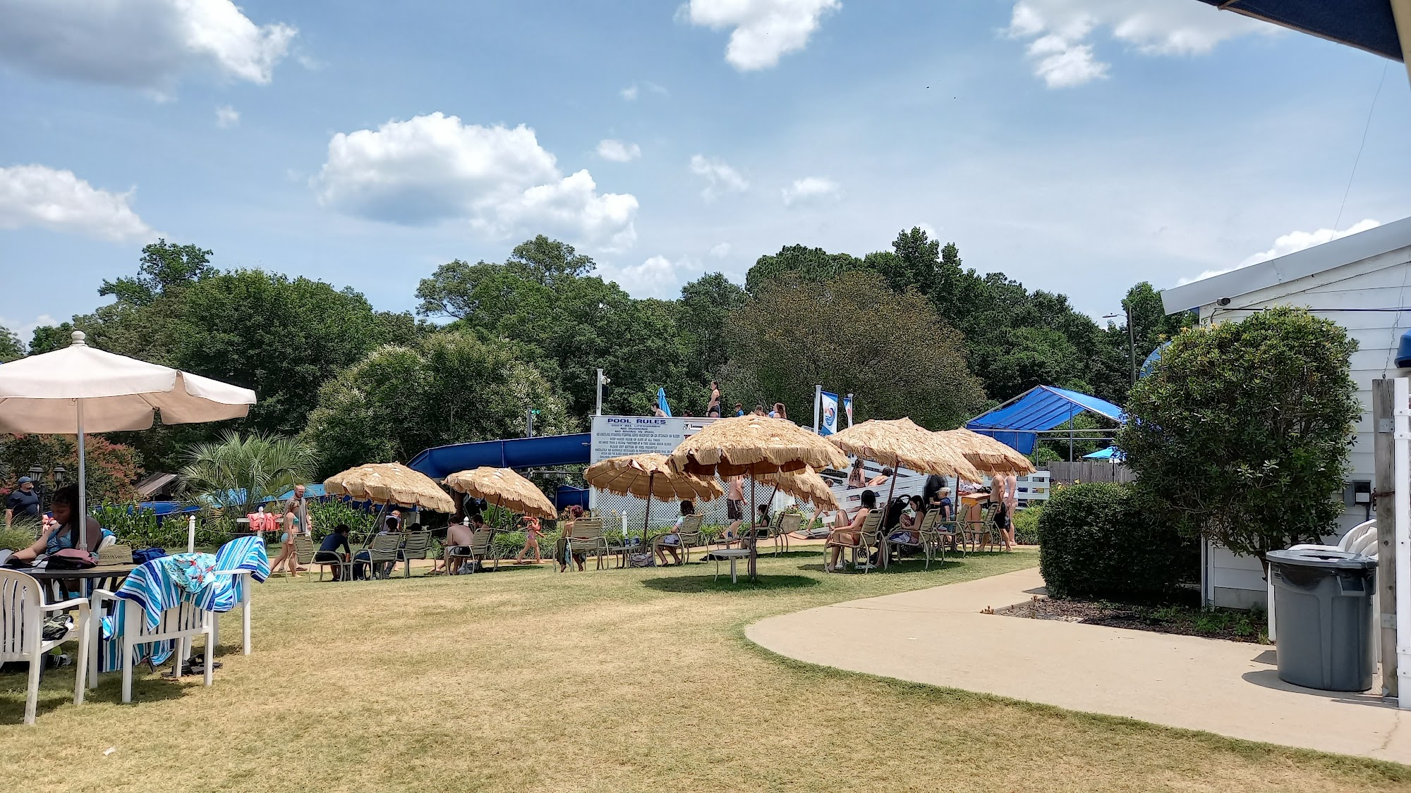 Our water park has two fun slides, and adult pool, and a kiddie pool with water features! We also sell food, candy, snow cones, and drinks. We have covered pavilions of various sizes and seating with umbrellas. We also offer the use of life jackets free of charge. Book your next party or group event with us!