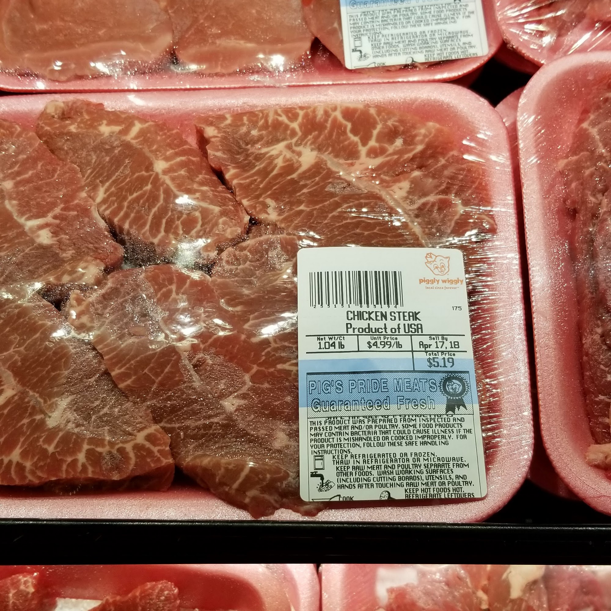 Piggy Wiggly has the best meat prices around. I'm an old Piggly Wiggly Southern meat Butcher and I know a deal when I see it. Porkchop 179.00 a lb always and 499.00 lb for nice T-bone Steaks. They give away free products each week. I shop at the jesup, ga store and it's worth the drive and to spend time talking about... read full comment