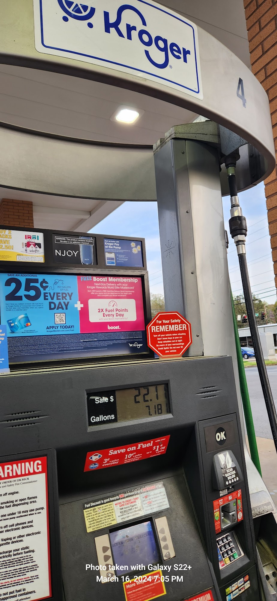 Gas prices much better when you have a Kroger plus card. Can save $ on gas and that's a plus.