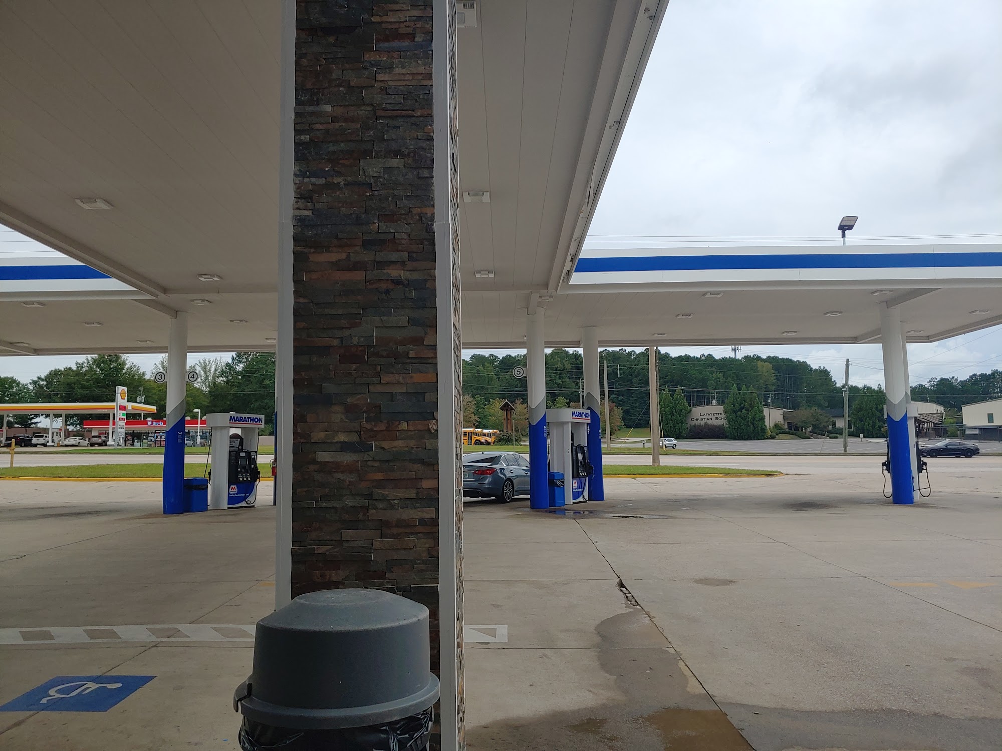 Convenient location right off interstate decent price for gas and there is a restaurant attached also