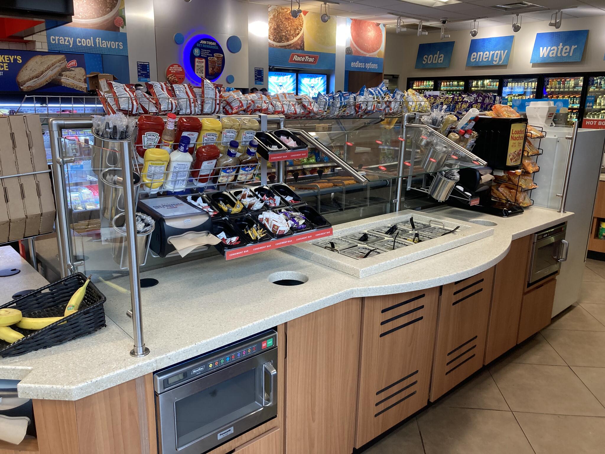 The store has a lot of guests in and out all day long. Veryyy busy store. Food is good. Employees work well. The store is very nice compared to many I have been to. Thank you Racetrac for keeping the store clean and and ran very professional.