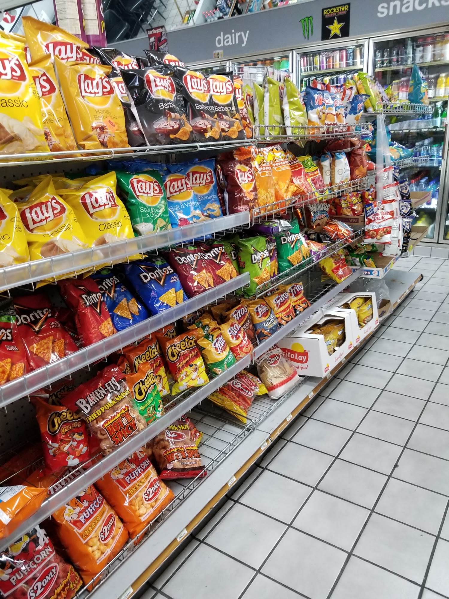 ABSOLUTELY DISGUSTING. I went to get a pre workout energy drink it was absolute filth inside. Get your gas and go! EVERY ENERGY DRINK WAS COVERED IN DIRT OR ROACH P**** Who knows but it was disgusting in there.