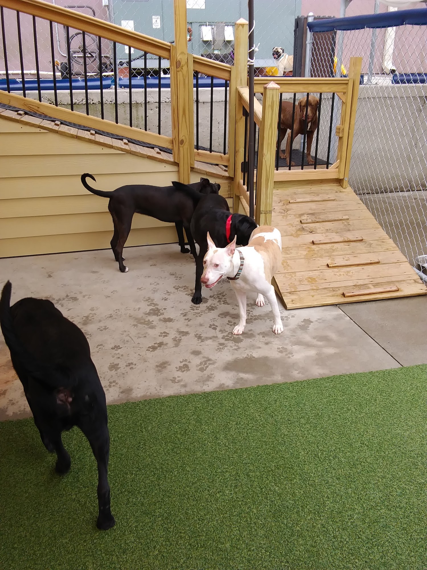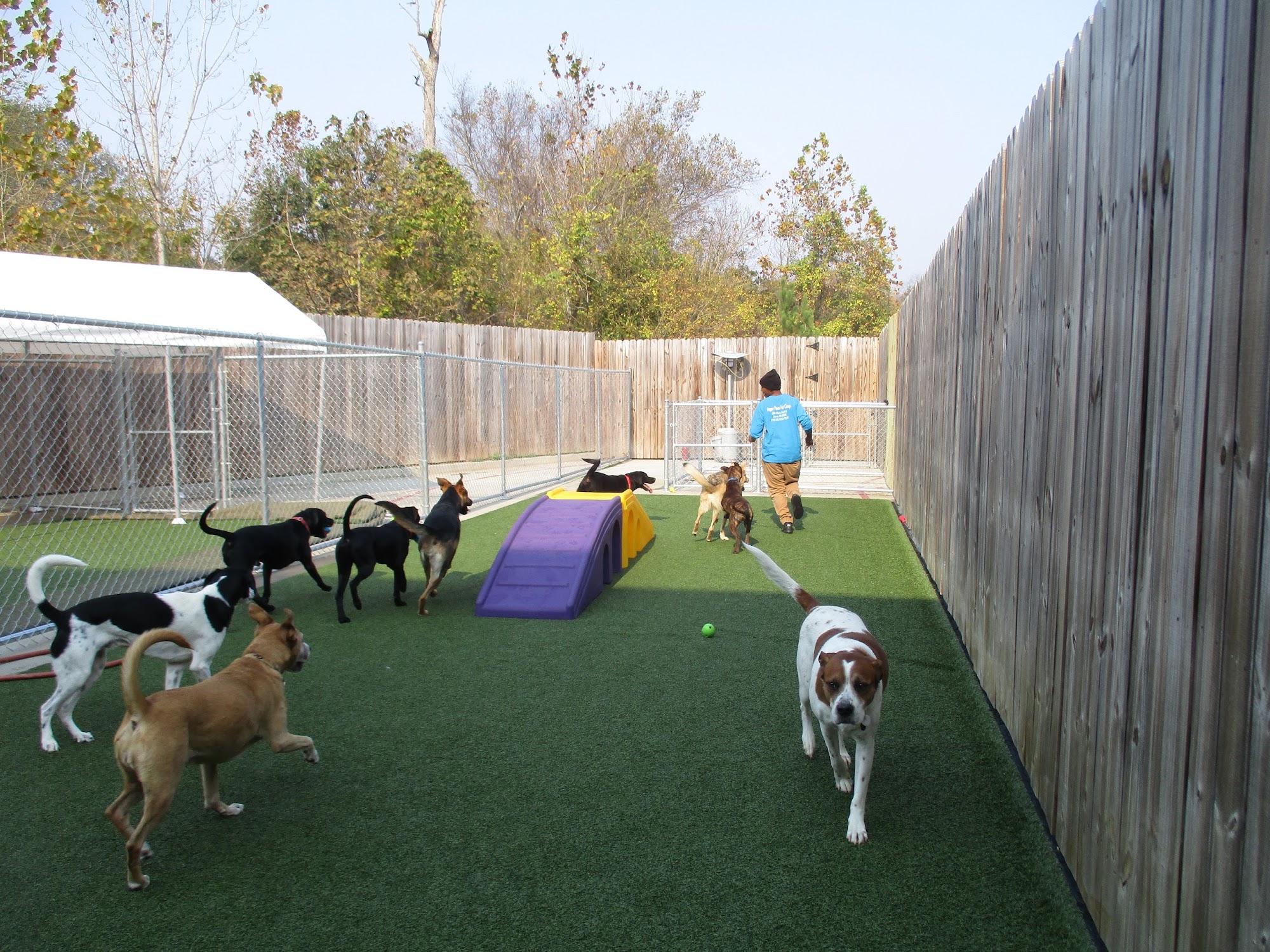 We’ve been taking our 75lb bernedoodle to happy paws for 3 years. Love it! The staff knows and loves our dog. We never worry about leaving her there for the day or weekend.Highly recommend!