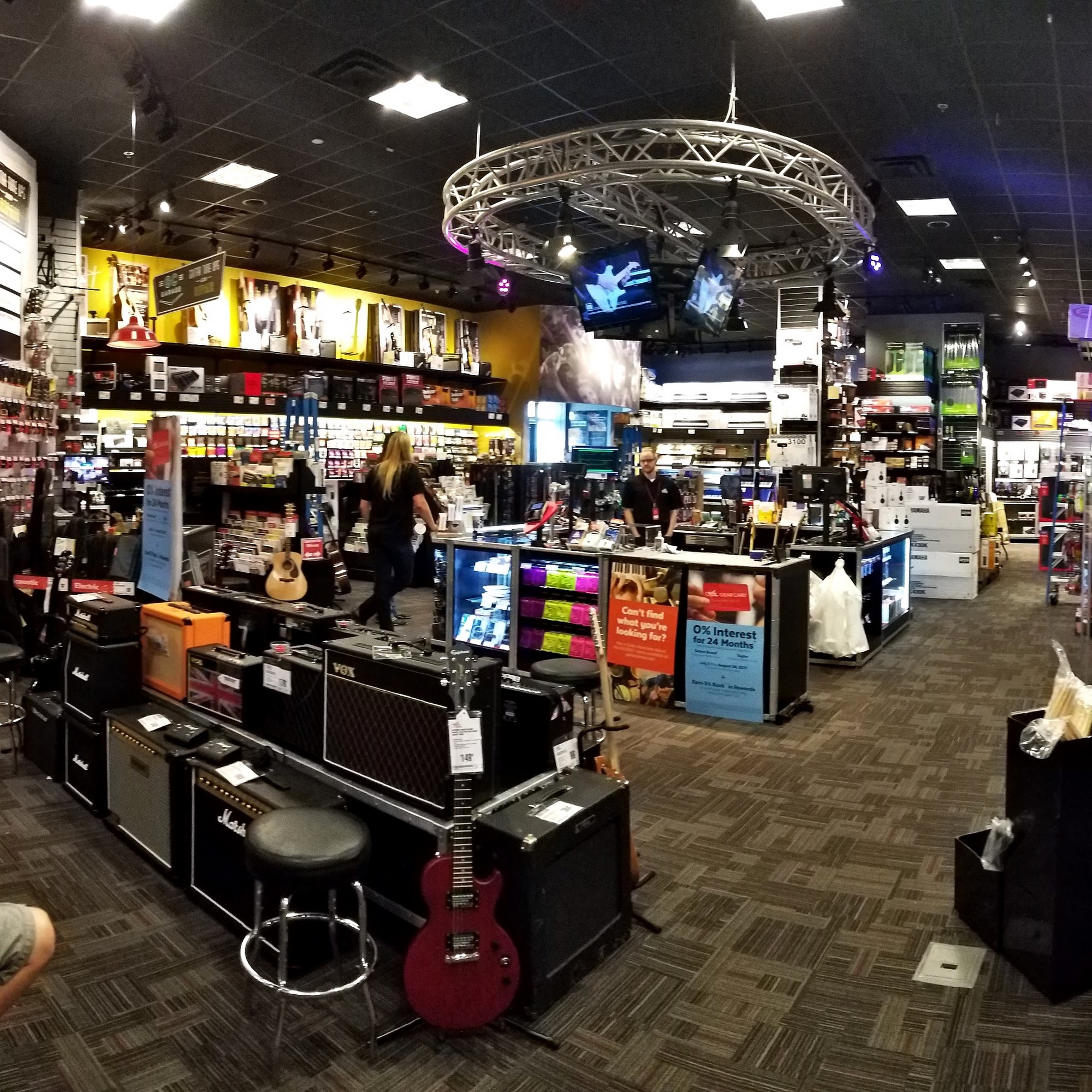 Guitar Center is a musician's dream with a huge selection of amps, drums, keyboards, recording gear, and more from top brands. The store has good inventory. Employees are very knowledgeable, helpful, courteous, and friendly, often going above and beyond to answer questions and find great solutions. They show deep respect for the consumer. Visits frequently result in long, enjoyable sessions trying equipment. Customers report never having a bad experience at this class act music center.