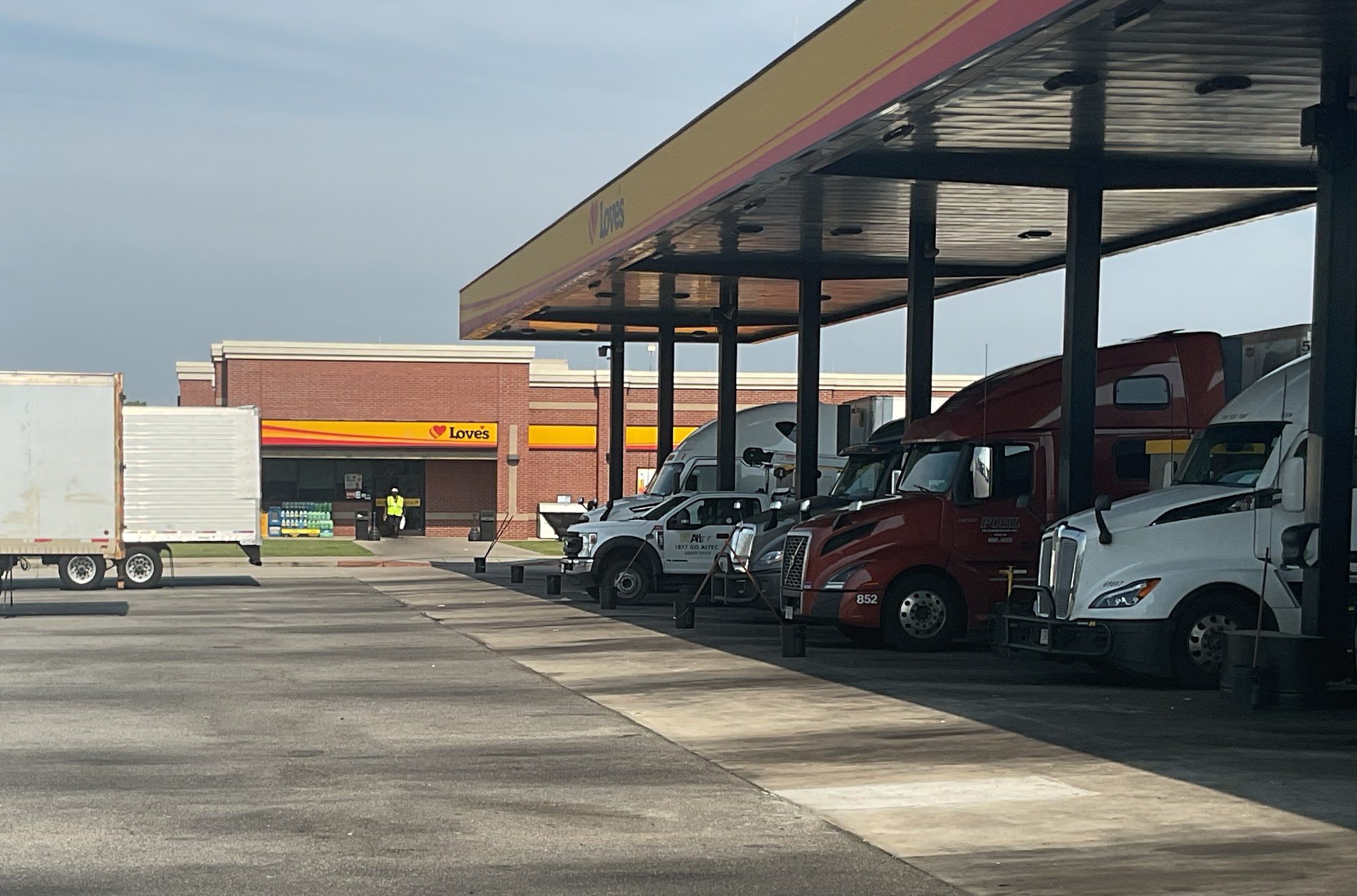 Love's Travel Stop located on I-75 at Exit 153/Sardis Church Rd offers friendly service, clean facilities, and a modern store stocked with diesel fuel, gas, food, and supplies for drivers. The stop features plenty of parking and a family-friendly environment with well-maintained amenities. Customers can choose from three restaurants, including their favorite Godfather's Pizza, Subway, and Chester's Chicken, all of which are clean and well stocked. The trucker's area is private, and there is a dog park for travelers with pets. The staff, especially during night shifts, is helpful and kind, with some employees going above and beyond, such as volunteering to do wellness checks on drivers in need. The store provides competitive gas prices in the area, making it a good stop for fuel. While the restroom sometimes needs attention, overall, it is a convenient and welcoming place for travelers and truckers alike.