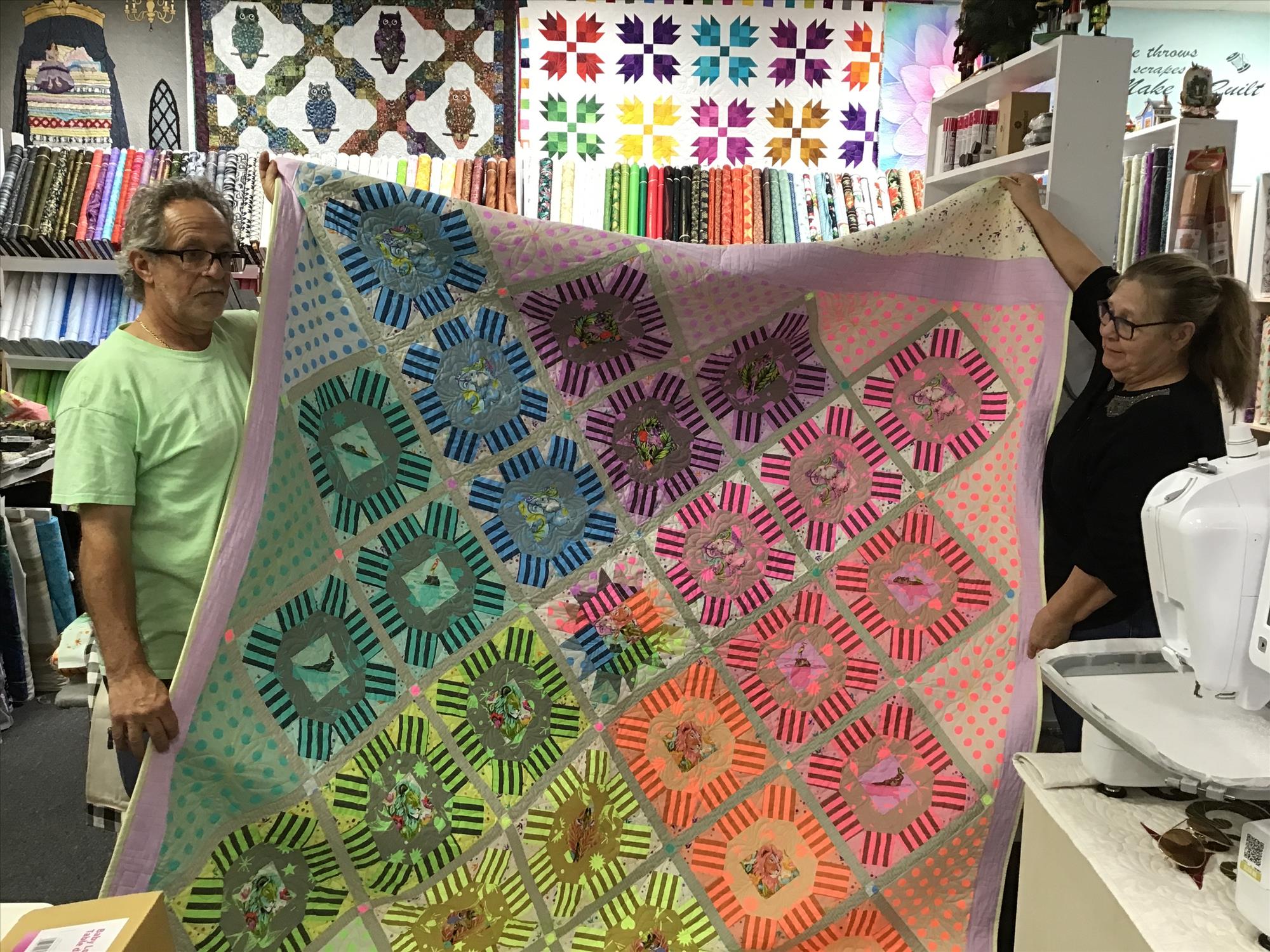 We have been quilt shop hopping for about a week on our travels. This was our first stop, and it was definitely memorable. Very friendly and knowledgeable staff. Lots of wonderful fabrics to choose from! It's a really great quilt shop.