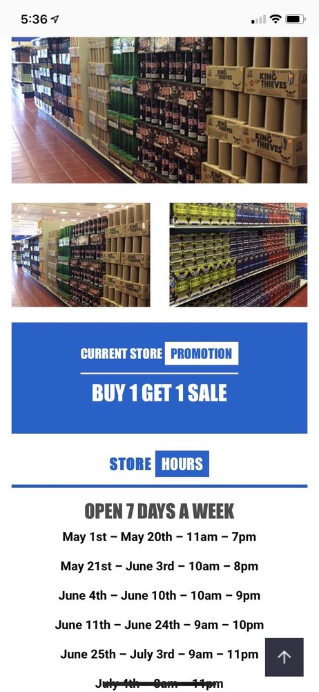 Great one stop shop for all the fireworks you need. Staff was very friendly and helpful. Pye was amazing!! She went well out of her way to help us make our gender reveal party spectacular. Thank you Pye and everyone else there that helped.