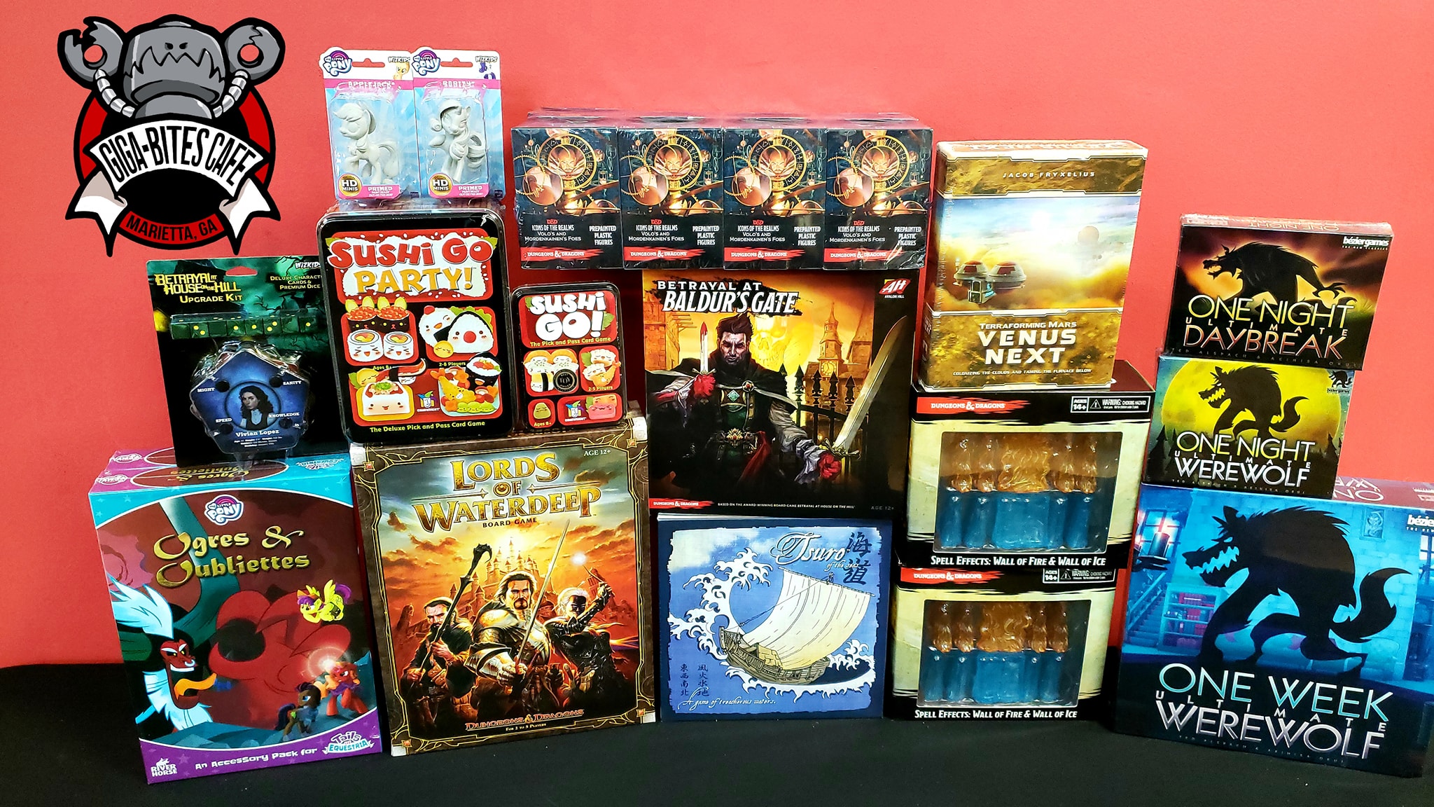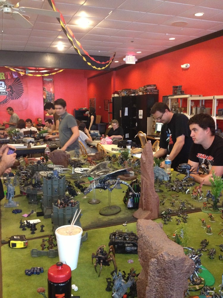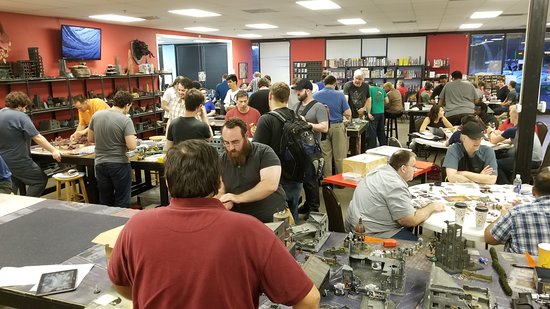 Giga-Bites Tabletop Cafe is a welcoming and inclusive store that offers a great space for gaming and socializing. It features a wide selection of board and card games, collectible cards like MTG, and miniature and role-playing game tables, making it a popular spot for gaming enthusiasts. The store has a fantastic product range, especially for Warhammer products, paints, and supplies, including models no longer printed. Customers appreciate the friendly and knowledgeable staff who provide helpful service and create a positive atmosphere. The store also offers real food and seasonal beverages, enhancing the overall experience. There is plenty of space for different types of games, and many visitors enjoy the lively environment where people of all ages, including women, play and have fun. Some suggestions for improvement include combining registers for faster checkout and expanding display cabinets for painted miniatures and terrain storage. Overall, Giga-Bites is known for its community feel, great shopping experience, and family-friendly environment, making it a top destination for tabletop gaming and social gatherings in Atlanta.