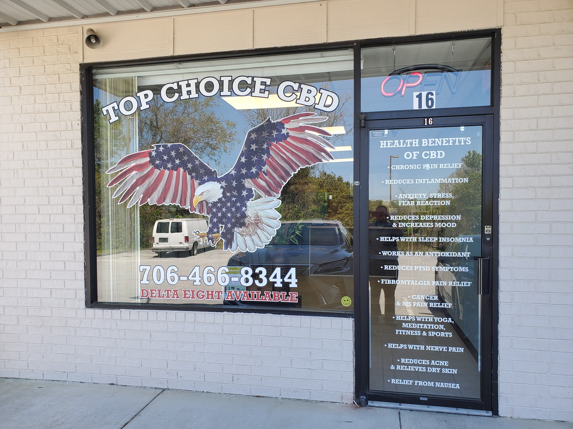 Top Choice CBD had exactly what I was looking for and at a reasonable price. The staff was friendly and helpful. Give them a call and see if they have what you need. I plan to stop every time I visit Augusta.
