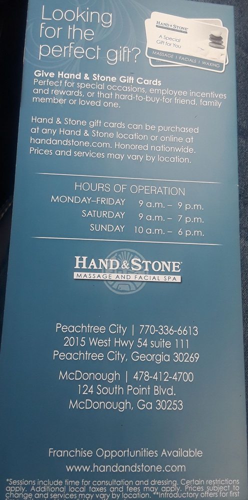 This was second time visiting Hand and Stone. I was sold of the the first visit! The front desk ladies are always warm and welcoming! Cinthia is awesome! She really has magical hands that makes me feel better!