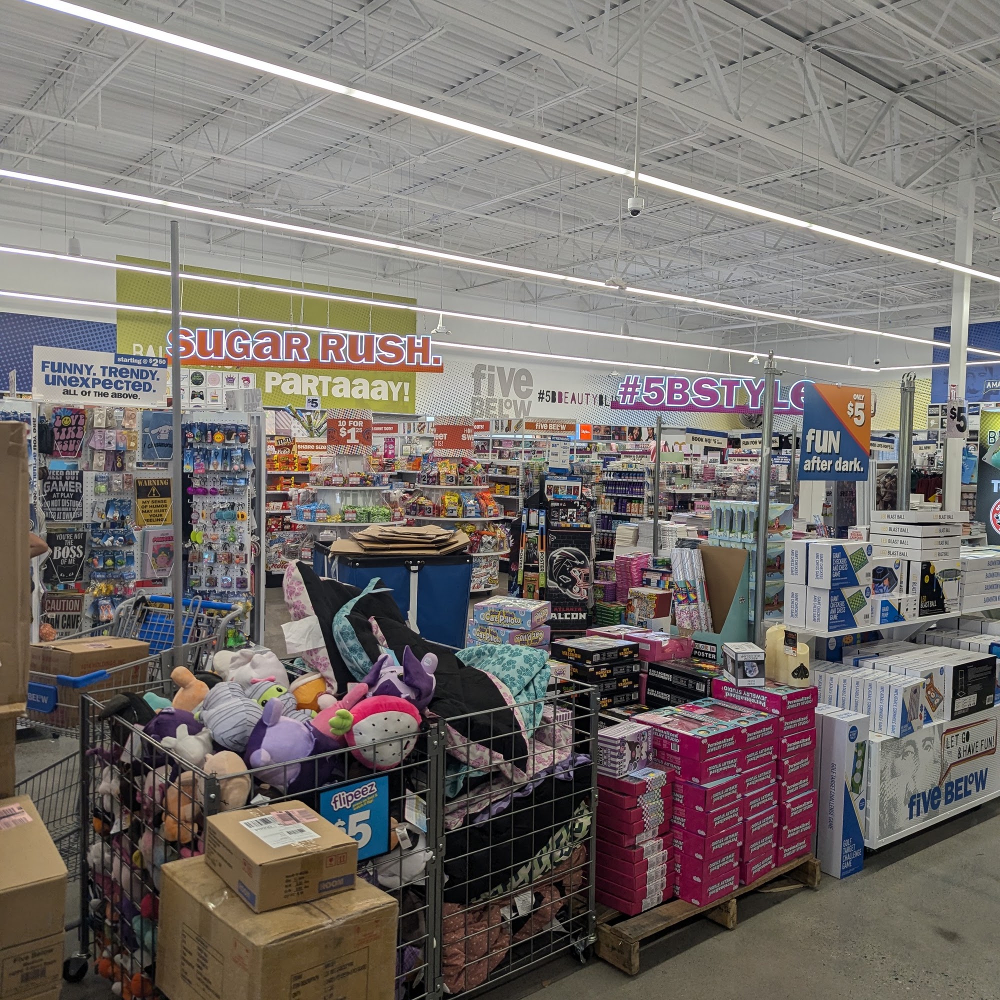 Five Below is a very clean and well-organized store, described as cute with a refreshing layout and design. It is noted for being a larger location with a huge and great selection of items, including different products than other stores. The staff is consistently reported as friendly, nice, super friendly, and very helpful, offering suggestions and dedicated to customer service. The store features all self-checkout registers with an associate available to assist. The overall atmosphere is positive, making it a worthwhile destination for shoppers.