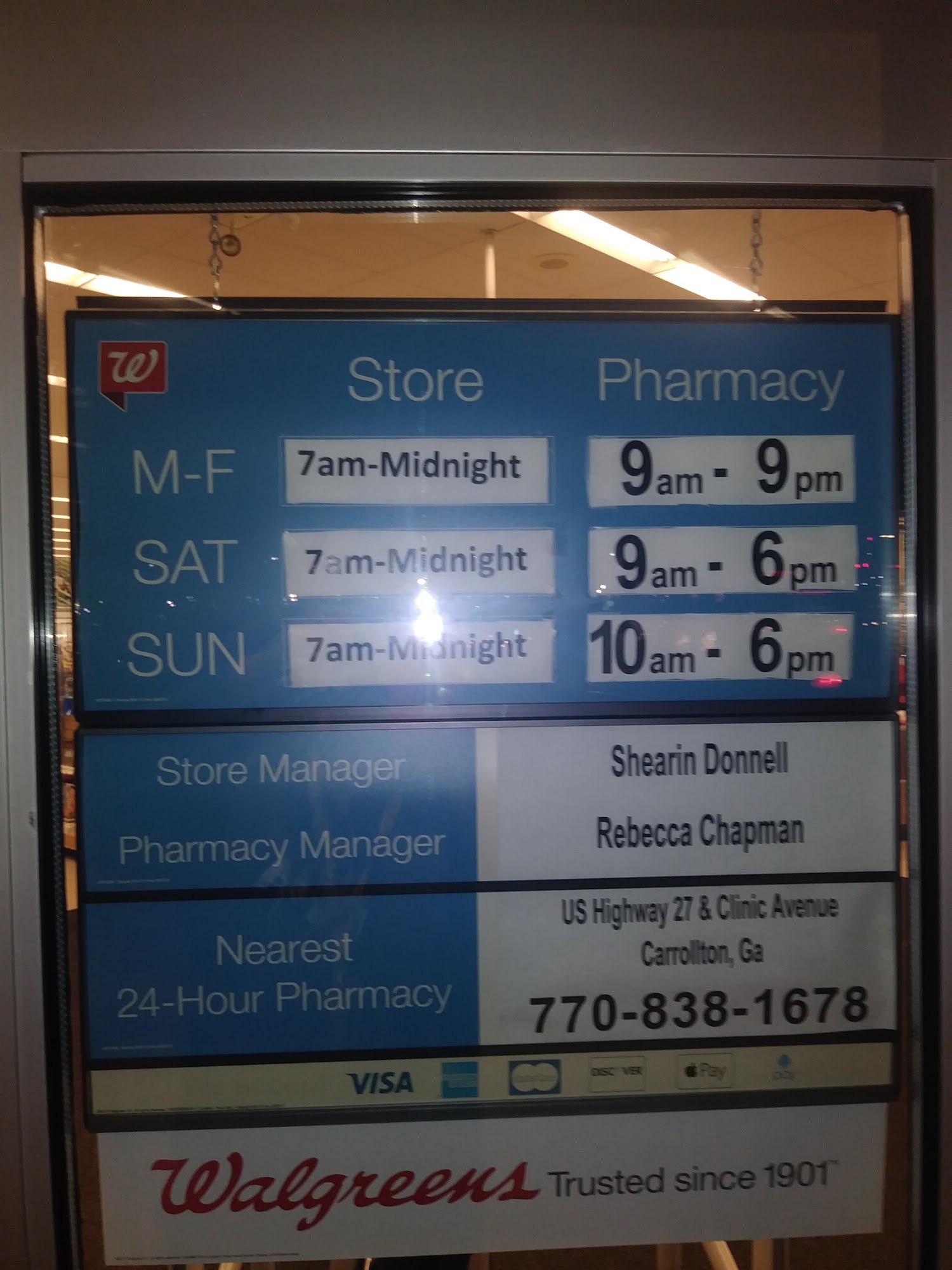 Walgreens offers a range of services including prescription refills, health and beauty products, and photo printing. The pharmacy hours are Monday to Friday from 9am to 1:30pm and 2pm to 8pm, Saturday from 9am to 1:30pm and 2pm to 6pm, and Sunday from 11am to 4pm. Customers appreciate the convenience and cleanliness of this location, with staff members who are generally helpful, knowledgeable, and accommodating. Some experiences have been positive, such as quick service and discounts on medications. However, there have been issues like limited hours for same-day pickup and recent problems with insurance authorization, which caused frustration. Overall, the store is convenient and staff are friendly, making for a mostly satisfactory experience.