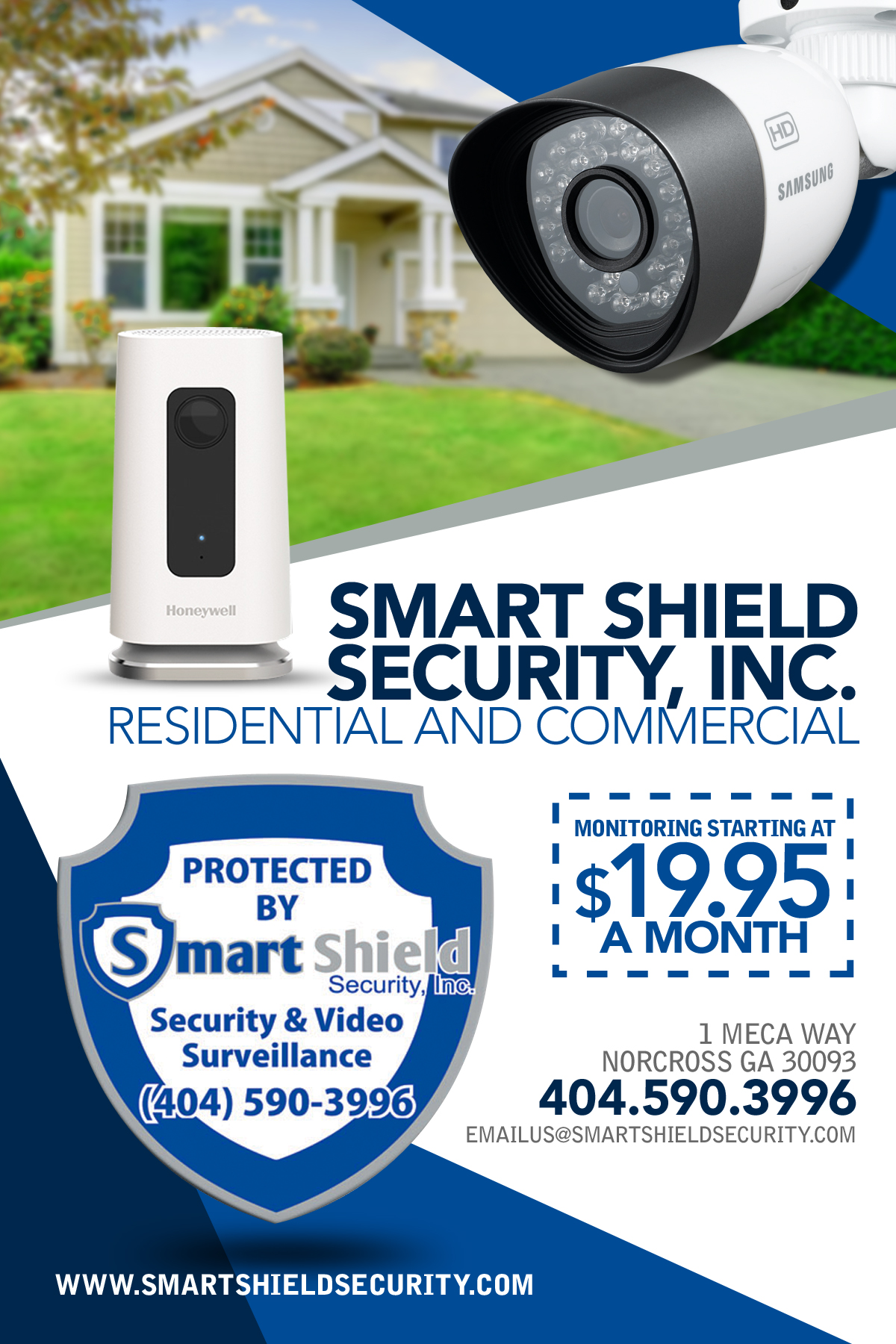Smart Shield Security provides Residential and Commercial Security systems for your piece of mind. Our monitoring prices are very competitive to the Atlanta market. In addition to home security we design and install video surveillance systems, video door bells, card access, and Smart home devices you can control remotely from smart phones.