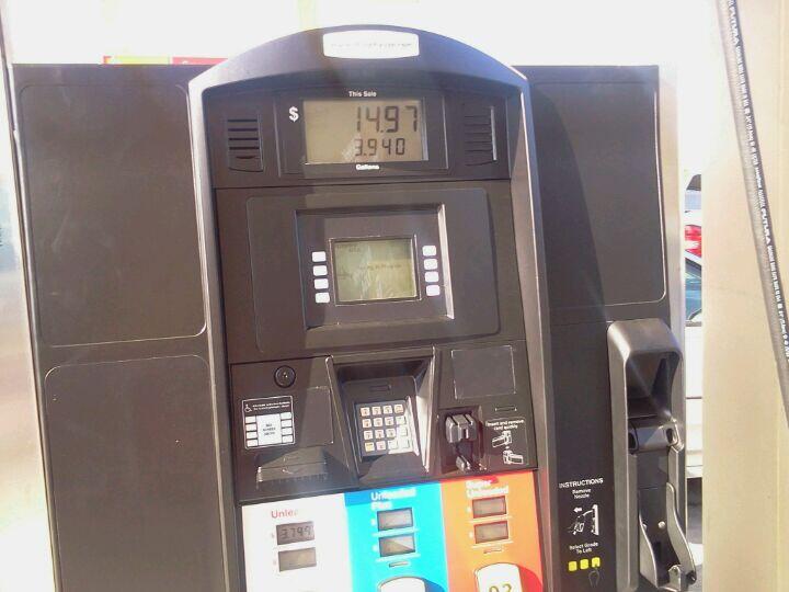 Cheapest gas in town ATM. Conveniently located off the highway. The tap processing was down. Thankfully I keep a plastic card on me. This review is strictly a rating of consistently competing with the gas stations around.