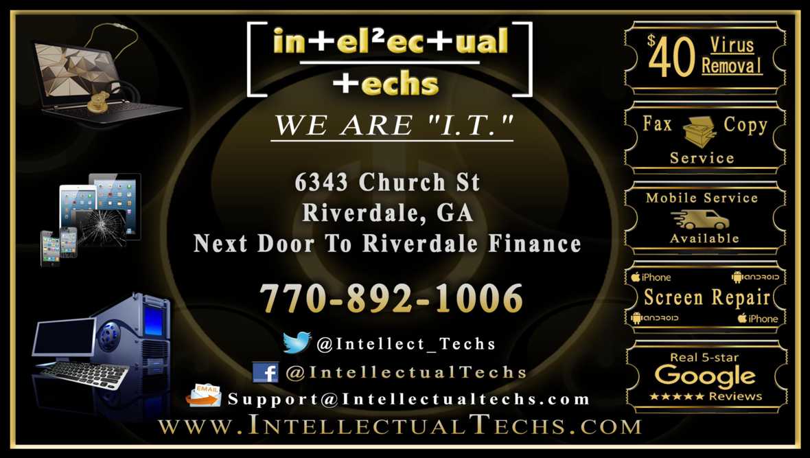 Intellectual Techs provides computer and Cell Phone Repairs Services to the Riverdale, GA area. Keeping your computer and Mobile Phone up to date and running efficiently is one of the most important things in today's world. In this digital age, we are highly dependent on computers and Cell Phone for everything from work to different purposes. Finding a reliable computer and Mobile Phone repair service is not easy and is one of the most difficult tasks. However, with Intellectual Techs, you don’t need to worry. We are one of the most reliable computer repair services in Riverdale, GA.