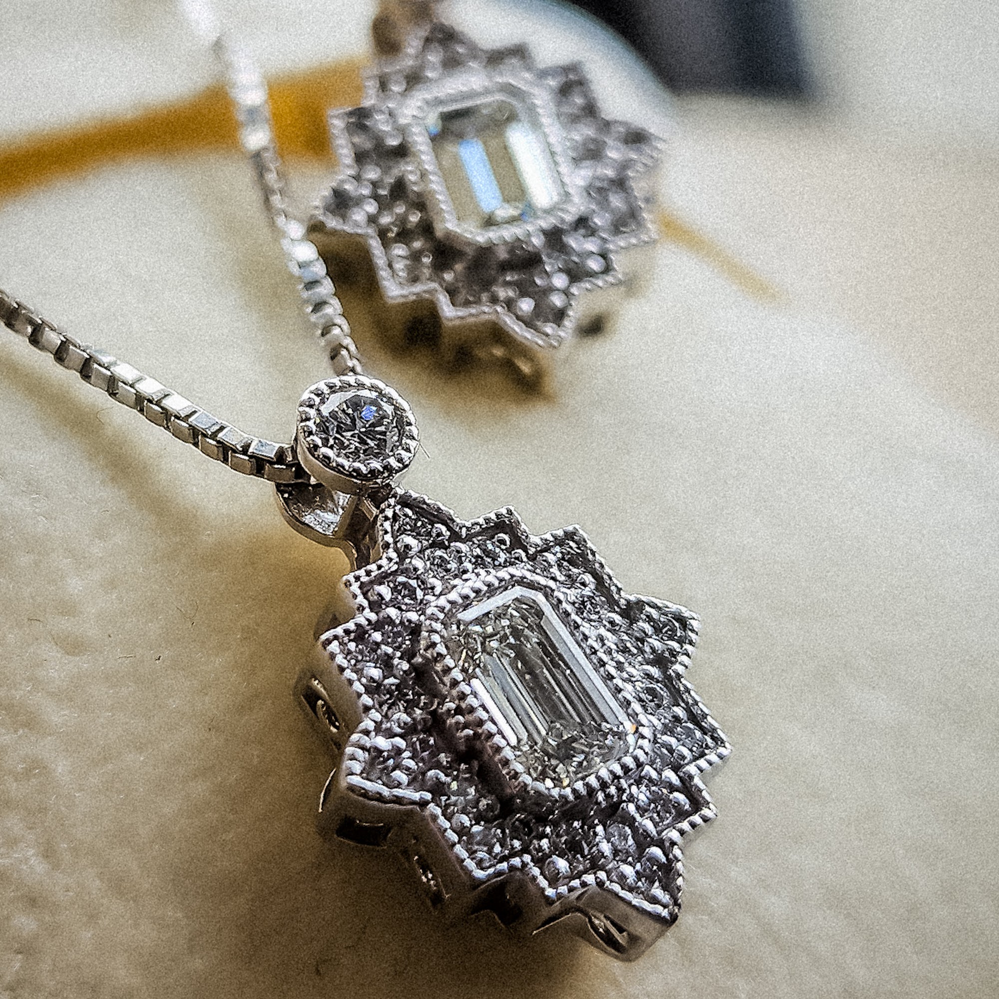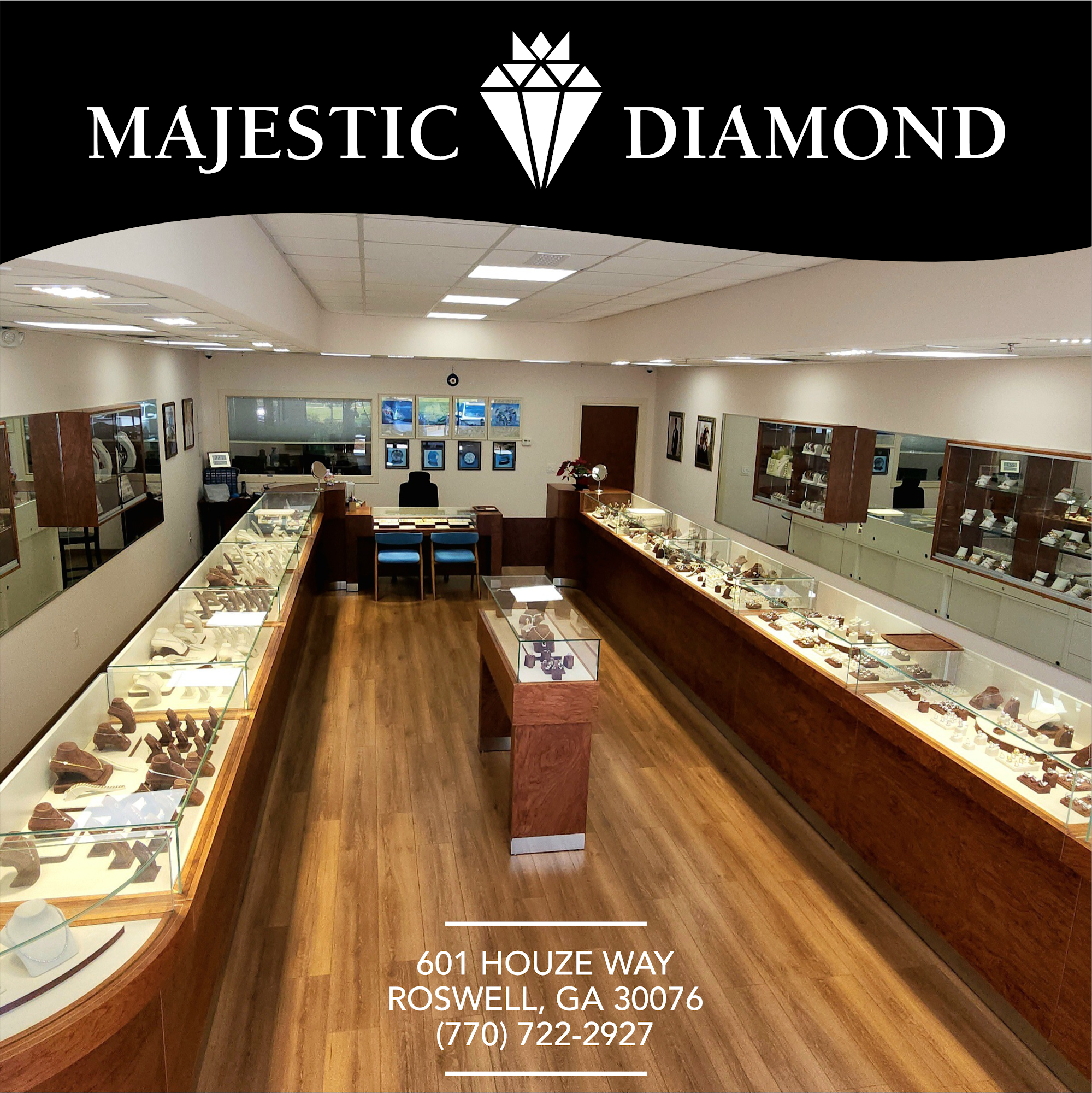 Majestic Diamond is a jewelry store in Roswell, GA, with over 25 years of experience crafting high-end diamond and precious metal jewelry. The shop specializes in custom jewelry, creating one-of-a-kind and gorgeous pieces that are works of art. They repair, resize, and reset rings with excellent results. The owner is described as very nice, talented, accommodating, helpful, honest, and trustworthy. Customers report a great and lovely experience, highly recommending the store as better than big box retailers and the best in the Atlanta area. The team talks clients through the custom design process to ensure a flawless final result that leaves people blown away. Majestic Diamond also buys and sells gold and luxury watches.