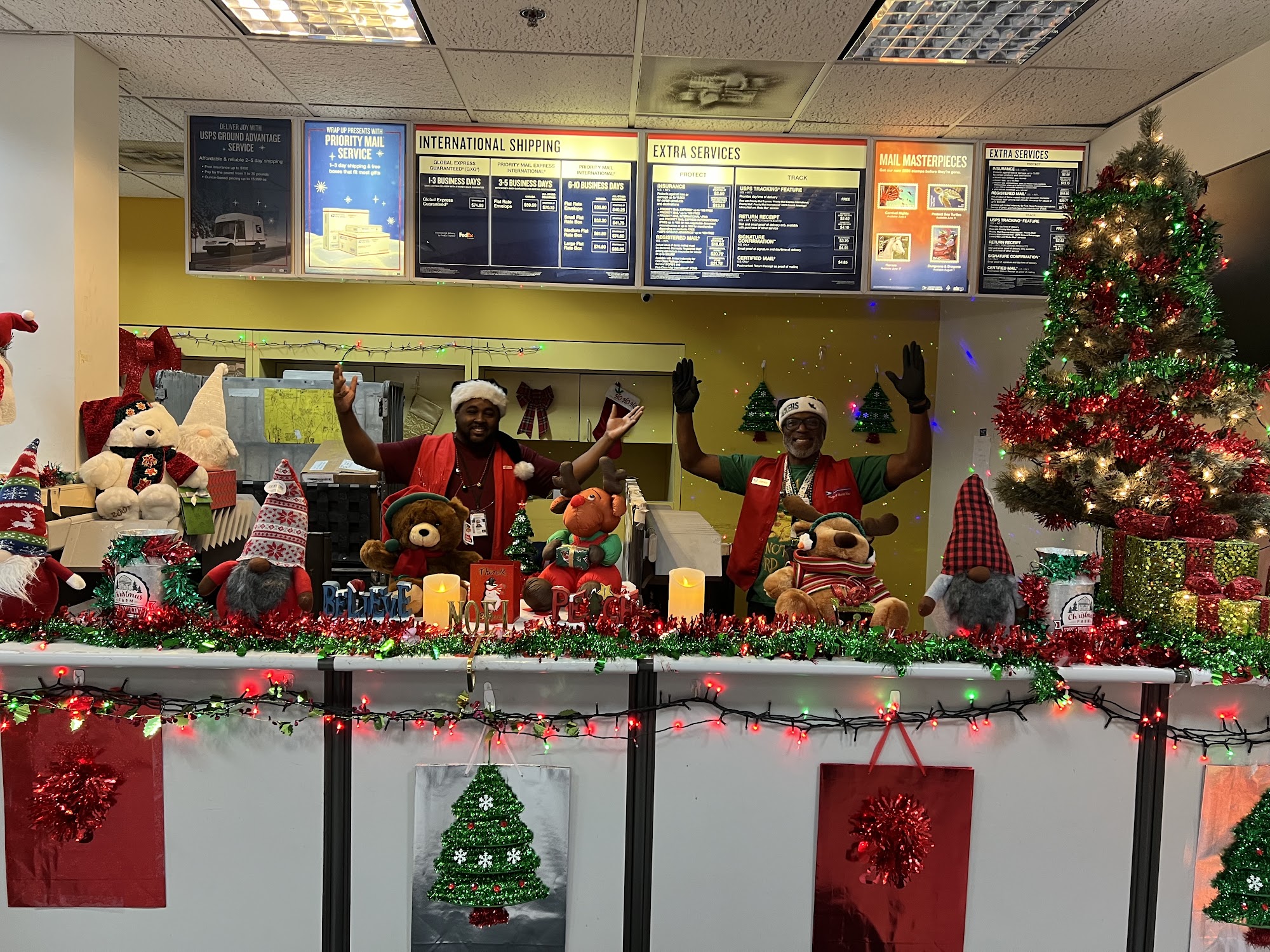 They were not open when they were supposed to be on Saturday. Came at 12pm they were closed came back 2hrs later they were still closed. The hours say open from 9am-5pm on Saturday. This post office does whatever they want. Terrible.