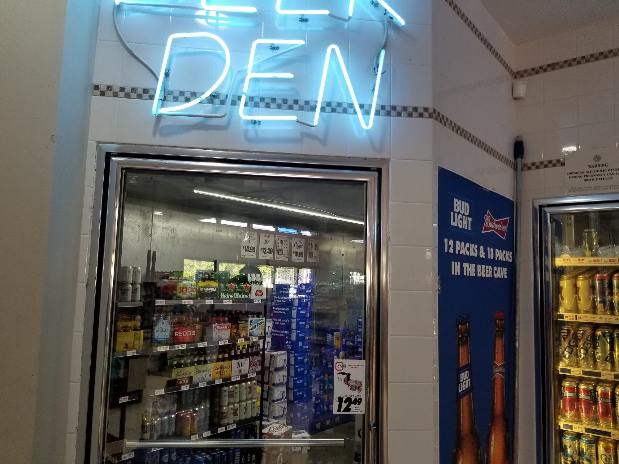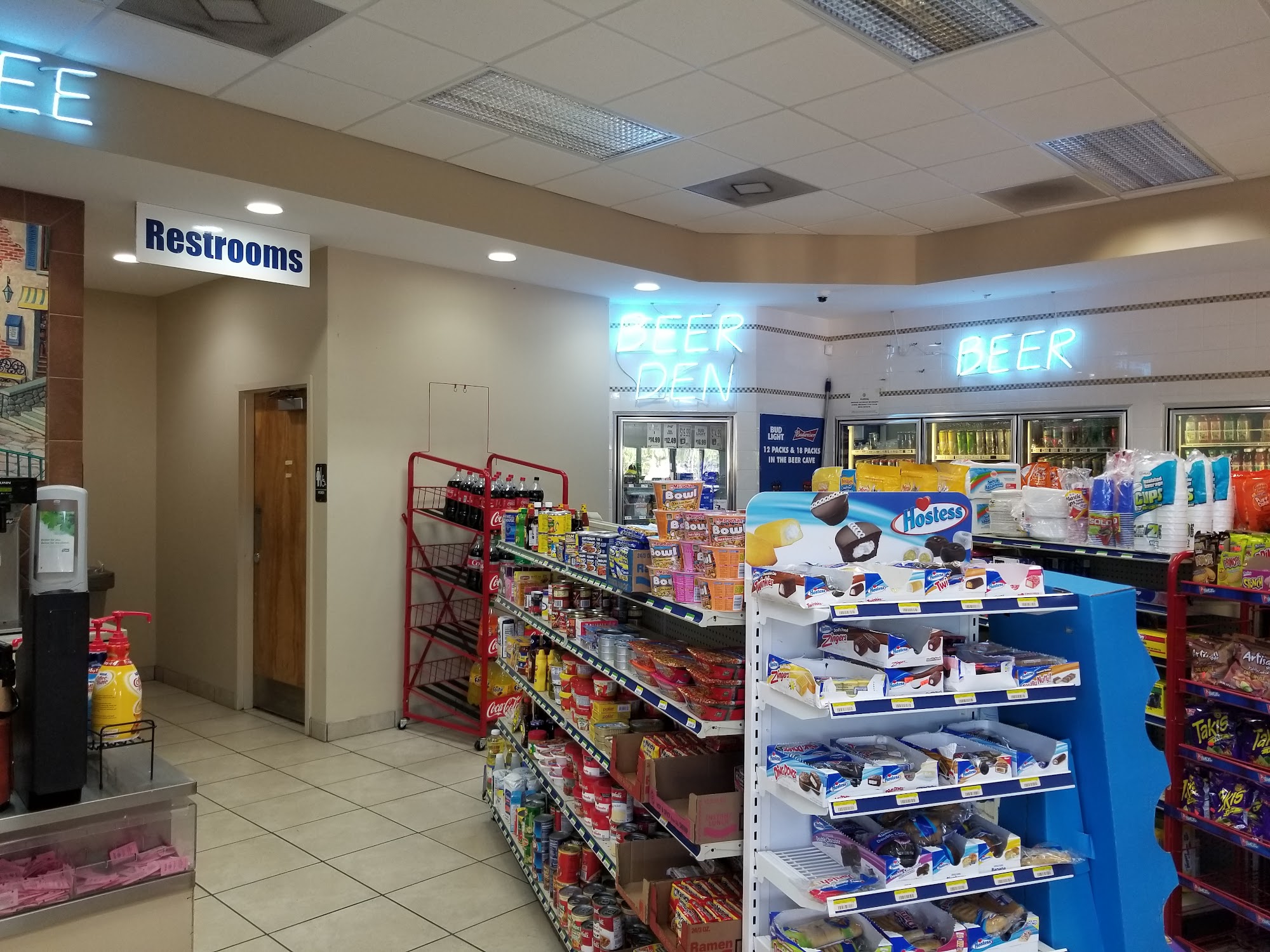Always open with big clean restrooms and cold beer. Discount card works pretty good. Better prices than parkers.