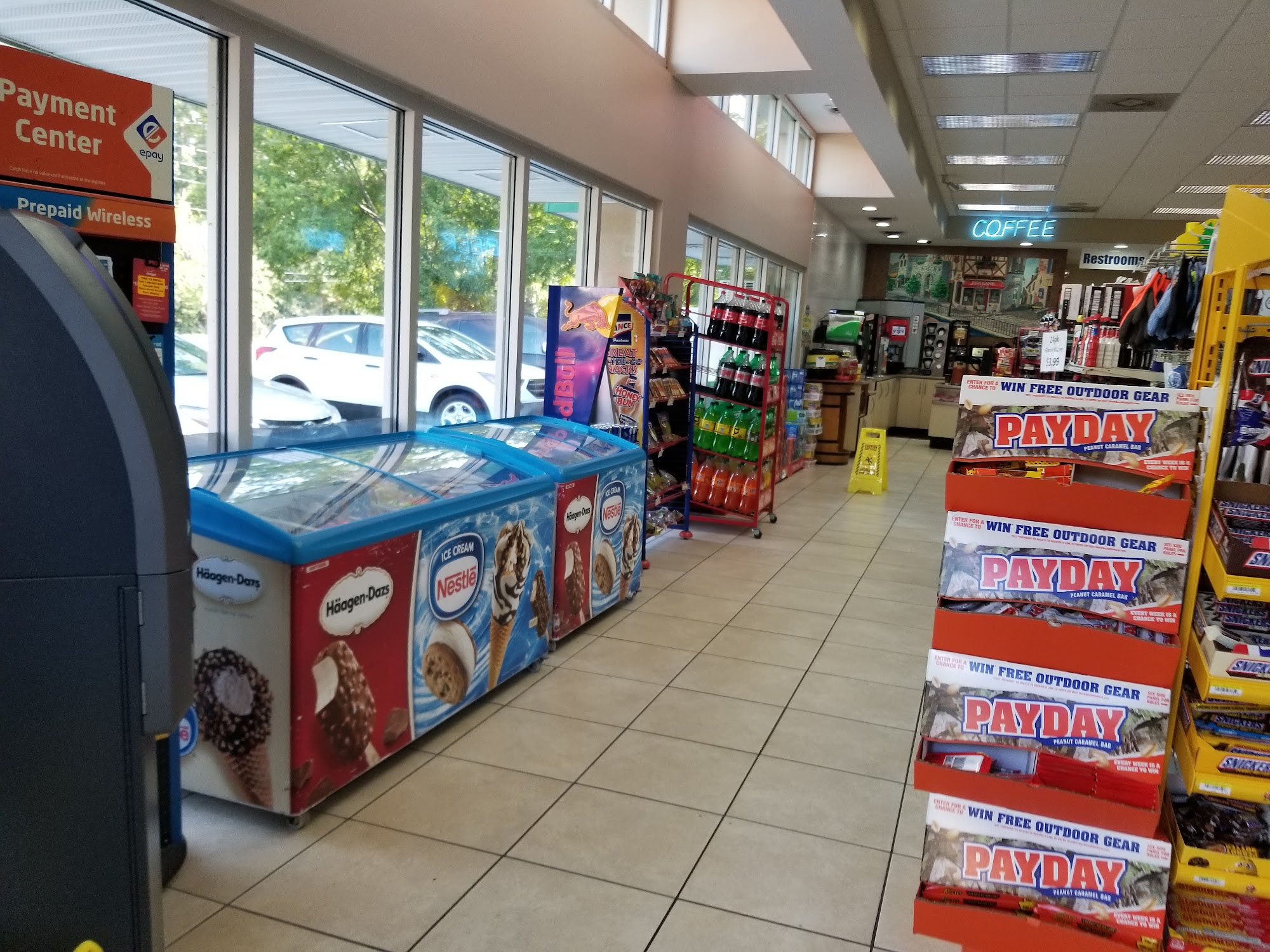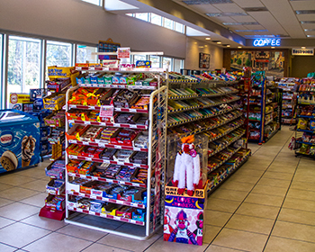 Ok store, has gambling machines, chu's card I couldn't register online. Helpful cashier