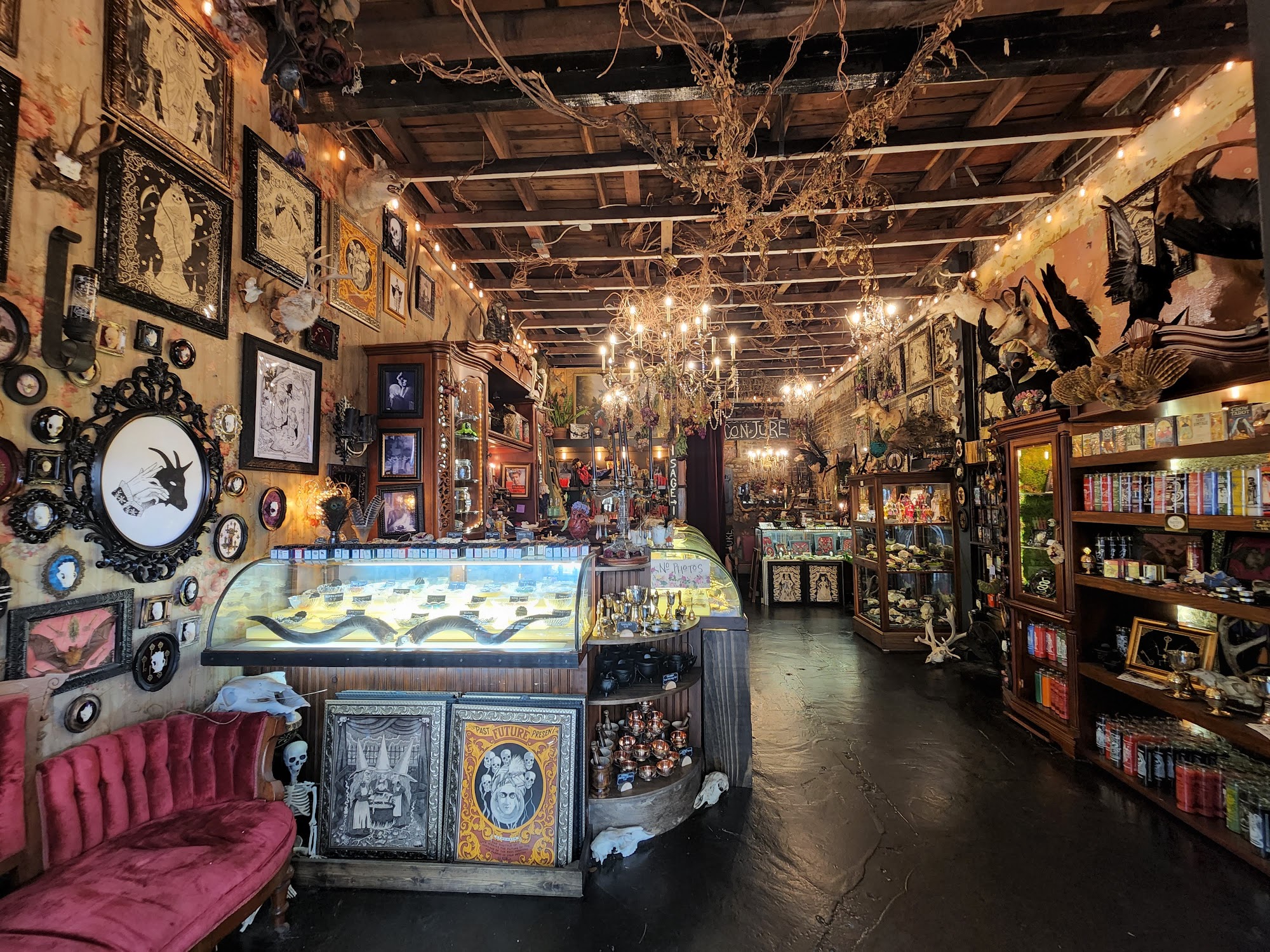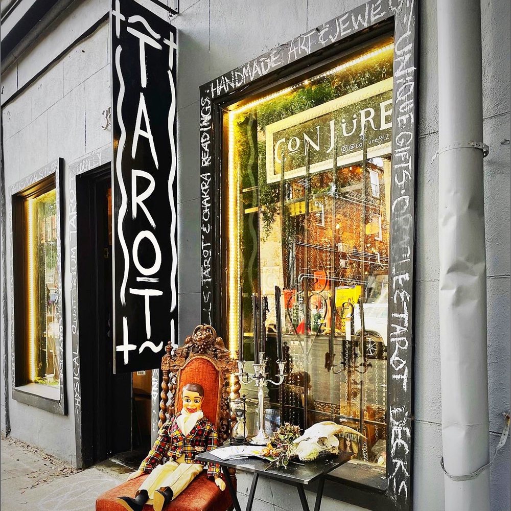 Conjüre is a metaphysical odditorium in Savannah, offering a wide range of witchy supplies and tools to help customers forge a stronger connection with the spirit of the earth. The store carries an extensive selection of tarot and oracle decks, crystals and stones, sage, incense, candles, oils, herbs, books, jewelry, oddities, taxidermy, skulls and bones, original one-of-a-kind and locally made art, gifts, and more. Born during the COVID-19 pandemic on Halloween, the store is locally owned and has a amazing energy, offering tarot readings five days a week from 12 pm to 6:45 pm, with walk-ins only. Customers describe the store as authentic, with a lovely presence of little spirits throughout, and the staff as knowledgeable and friendly. Whether you're a long-time practitioner or just exploring the metaphysical world, Conjüre is a must-visit destination in Savannah.