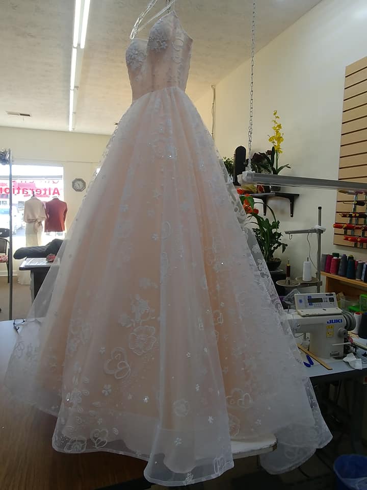 Amazing work!My dress did not look like the model dress when it arrived and without seeing the picture she made it look better!She did not miss a detail and even pointed out things I did not consider! Great customer care and timely. Highly recommended for your important events and occasions!