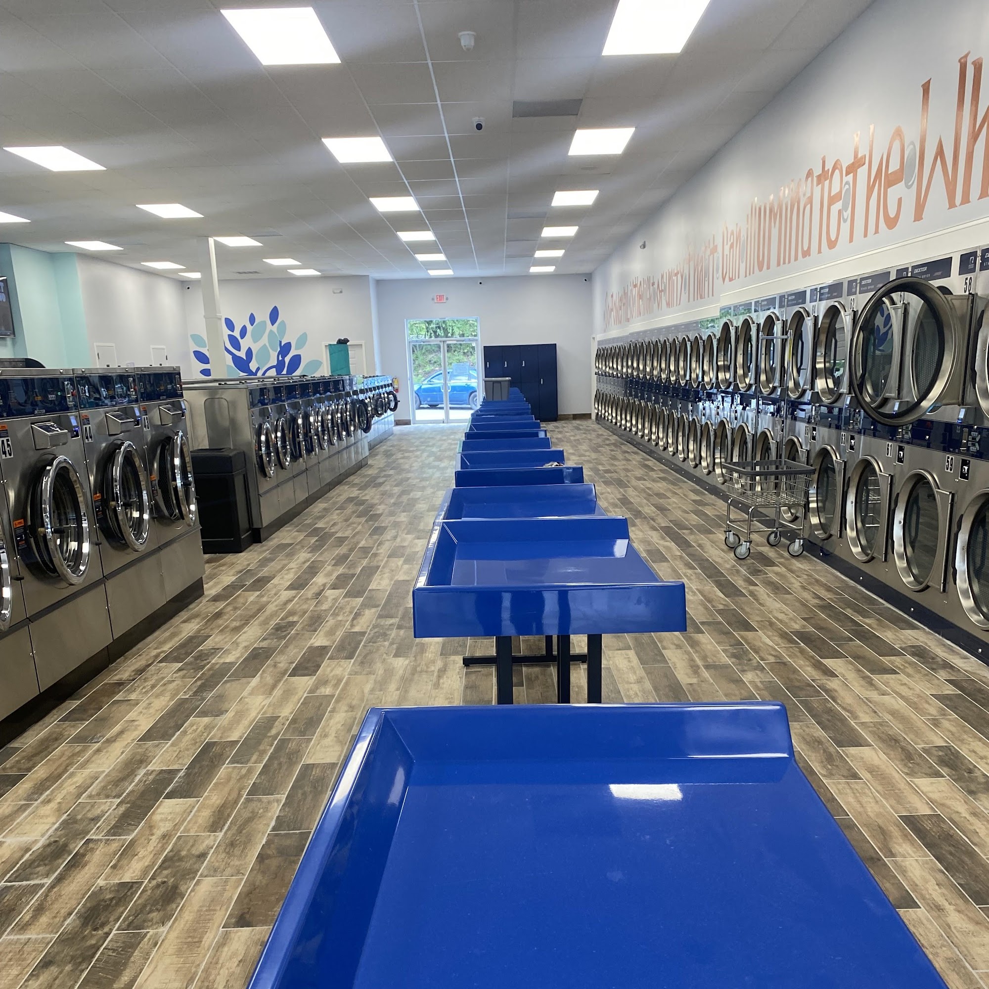 Very clean. Busy, but there are always washers and dryers available. They have everyfrom 8 load to 1/2 load washers. Good mix of music playing overhead. Nice that you can pay with a card at the washer/dryer. Smooth and seamless process.