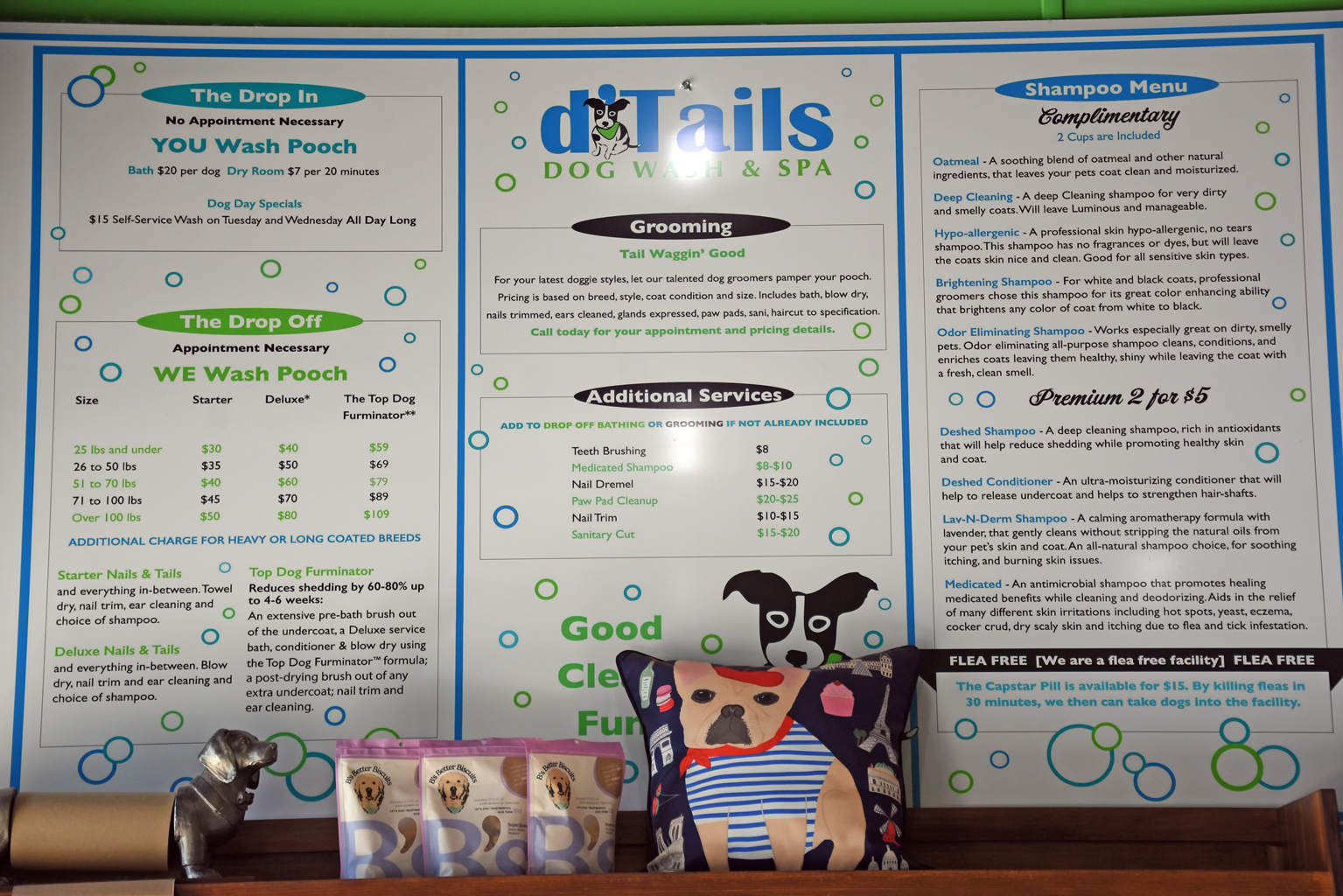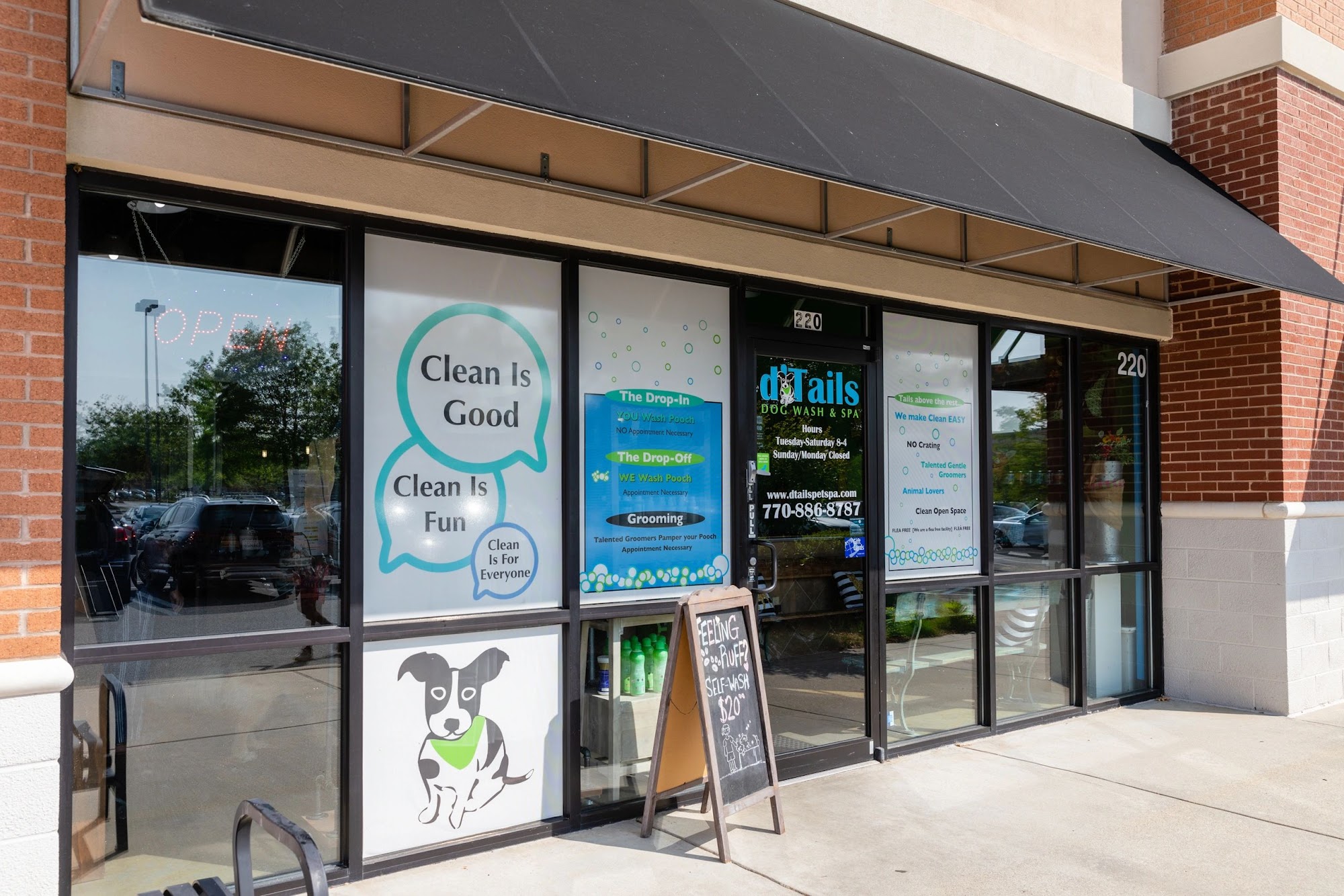 We are a premier Dog, Grooming and Pet Wash facility serving the Cumming and Johns Creek areas. d’Tails is committed to providing quality care for our new and existing customers. We want to make your dog wash experience the best ever. We are passionate about animals and we care for your pets with TLC. A happy clean pooch is a happy owner in our book!Once your pup leaves here, they’ll look show ready. Make an appointment today or just drop by. Appointment necessary for Grooming and The Drop Off Full Service Dog Wash. NO Appointment Necessary for The Drop-In Self Service Dog Wash. Self Service closes at 3:30pm daily.
