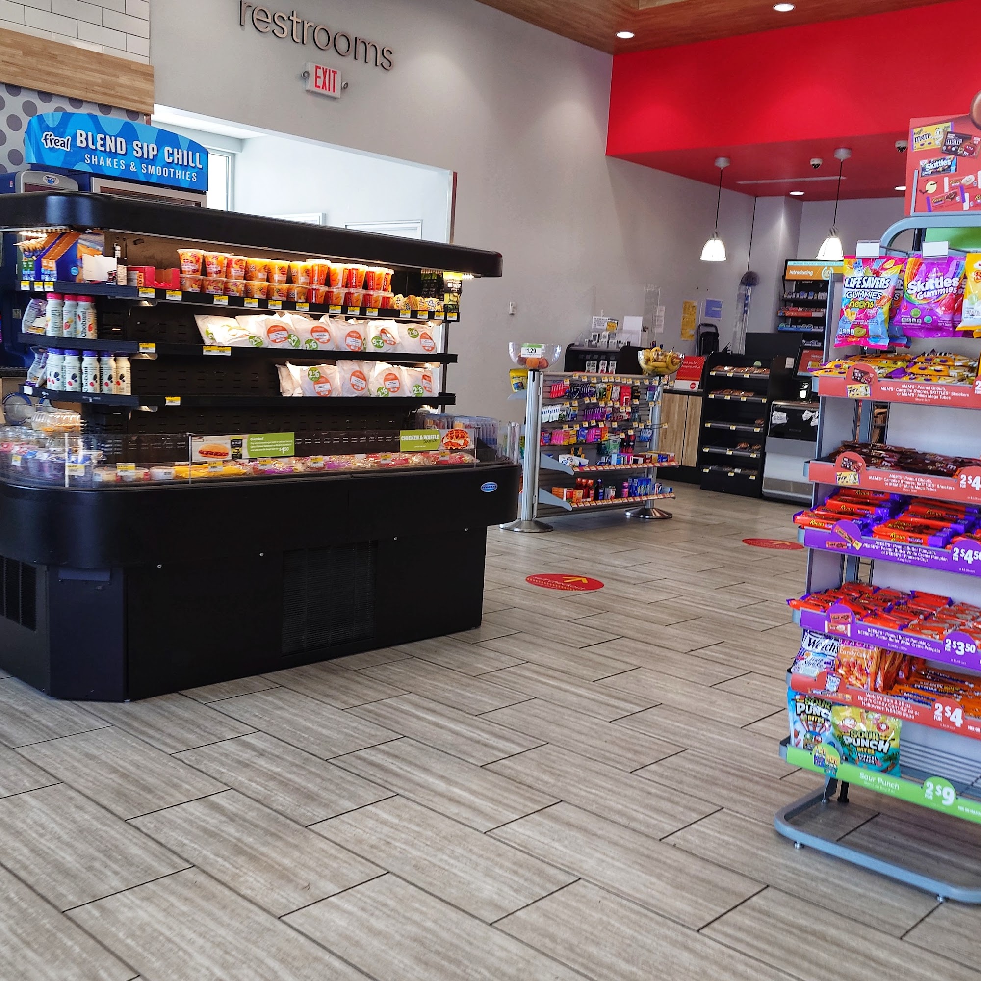 Stopped for gas then went inside to restroom. SO CLEAN!!! And I want the shiny pink tile in my own bathroom! The mgr was cheerful & food smelled great. Store was also very clean.