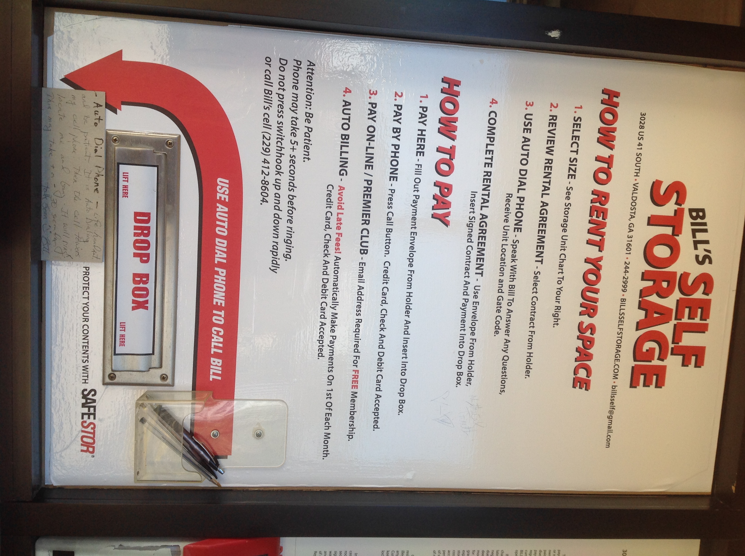 Bills great to work with! It’s pretty cool how you can rent a storage unit without a physical person standing in front of you! They are open 24hrs a day. The place is very clean and cameras everywhere. I feel my stuff is pretty safe here. Highly recommend!