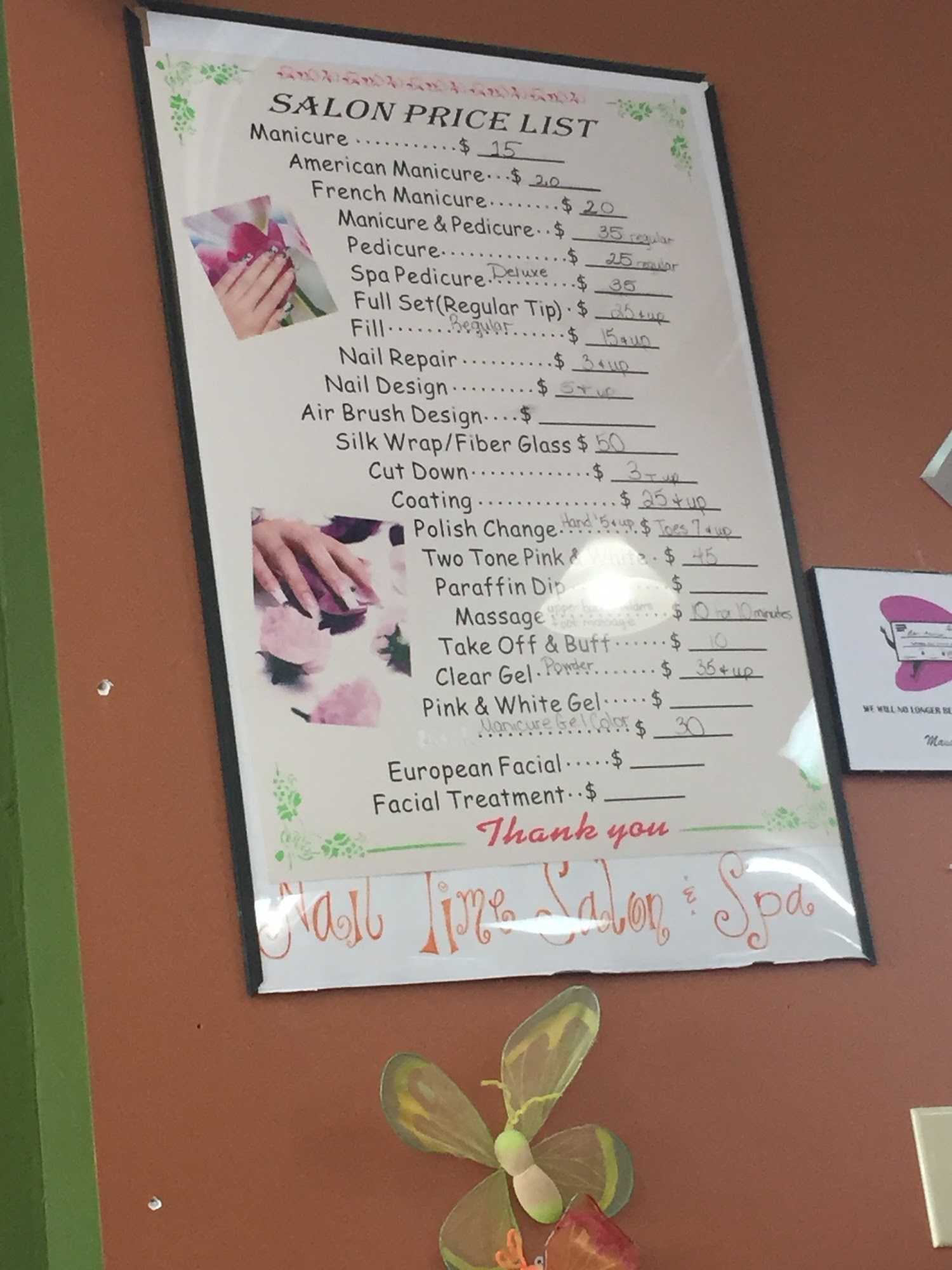 Nail Time Salon is a welcoming establishment where customers are treated with care. The skilled and attentive staff ensure clients leave satisfied with their nail care services. The salon has a warm atmosphere, with employees who provide personalized attention, even remembering regular customers. While some clients may have specific requests, the salon strives to meet individual needs and provide excellent service. Customers praise the relaxing atmosphere, beautiful color choices, and clear communication from the technicians. The nail shapes are done perfectly, with straight sides and no imperfections. Clients appreciate the easy check-in and hassle-free payment process. The salon is known for its clean work, with one reviewer stating they "do clean work!" The new owners have received great reviews, with one customer describing a fantastic pedicure experience. However, some clients have noted that the hand massage was not offered, even when they saw others receiving it. Additionally, one customer mentioned they had a birthday coupon they forgot to mention, but the salon did not seem to have it logged in their account.