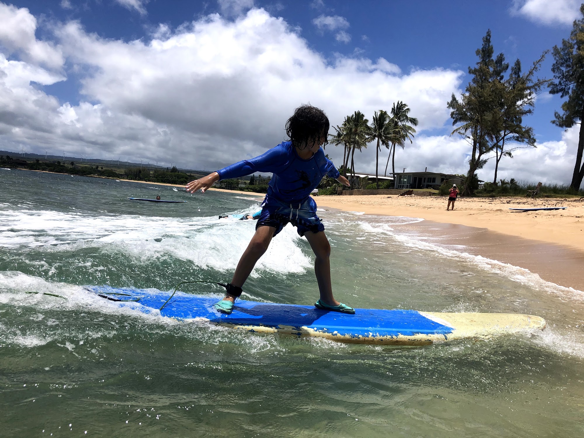 We specialize in teaching beginners how to surf and enjoy our beautiful north shore of Oahu safely. We surf in a small wave cove filled with sea turtles. We provide all of your surfboard gear, and my dogs and I are at almost every lesson to give you the thrill of your life on riding a warm Hawaiian wave.