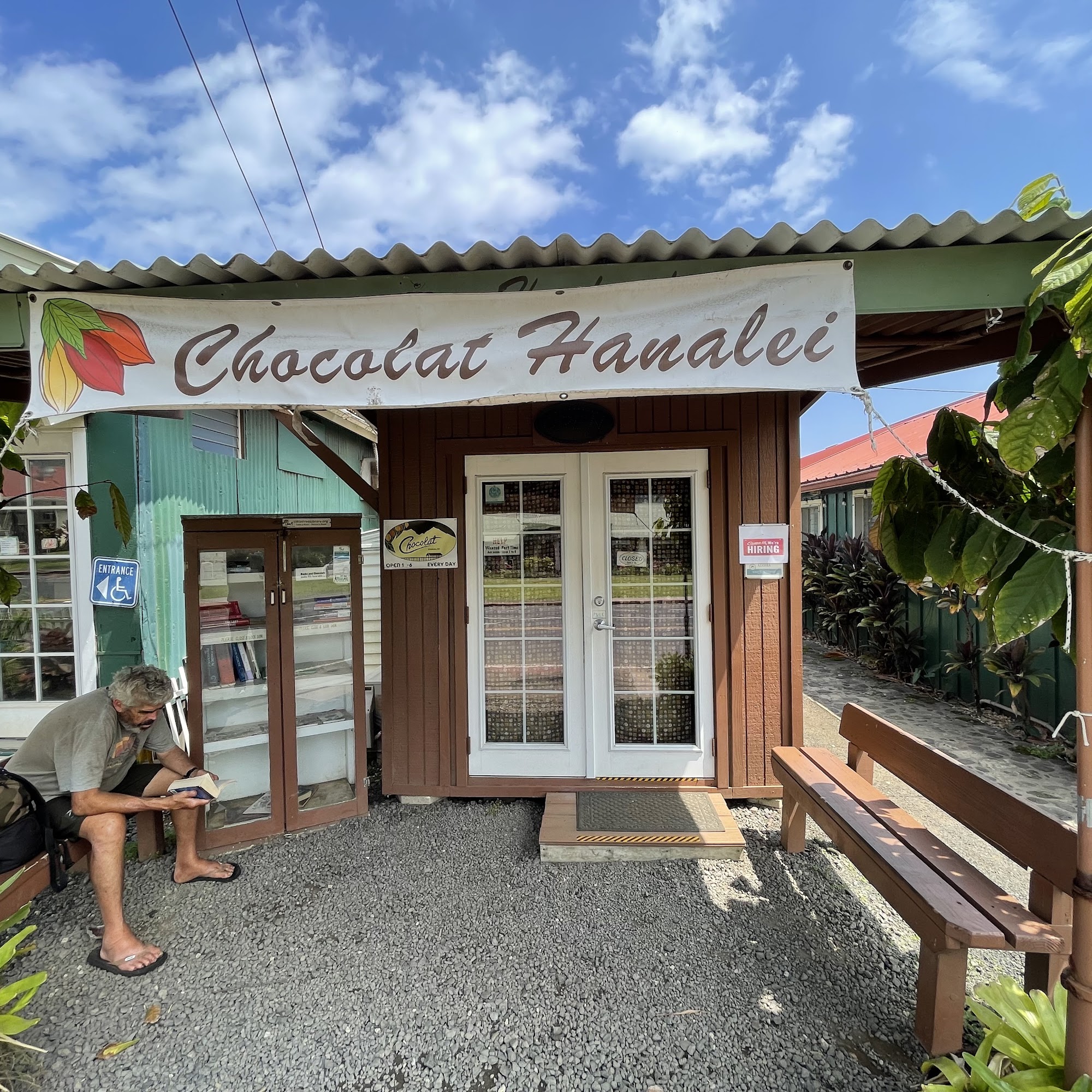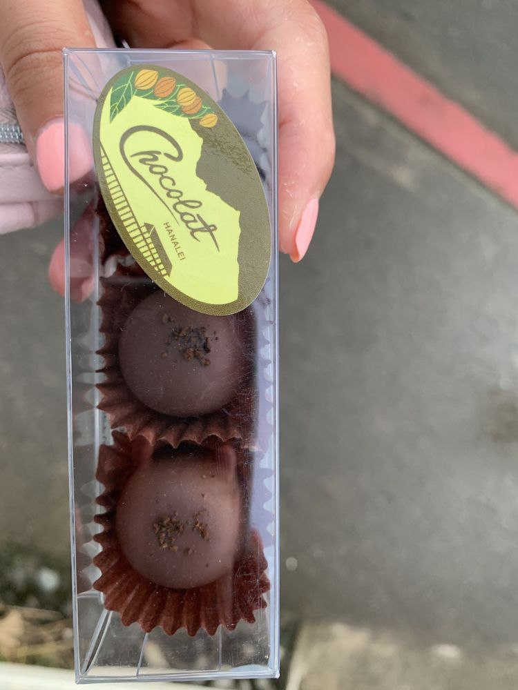 Chocolat Hanalei offers delicious, locally made chocolates crafted on their North Shore farm. Visitors love the variety of treats, including the Kauaʻi 80% chocolate, vegan coconut truffles with organic coconut cream, and salted chocolate bites. The chocolate bars, made from beans grown on the farm, are highly recommended for both tasting and taking home. Customers appreciate the friendly staff who provide great recommendations and share information about the chocolates. The shop features a small selection of artisan chocolates, including praline truffles, peppermint bark, chocolate-dipped mangos, and a small artisan chocolate shake, all praised for their fresh taste and quality. While prices are considered expensive, many feel it’s worth it to enjoy and support a local business. Overall, Chocolat Hanalei offers a delightful chocolate experience with fresh, high-quality products and warm customer service.