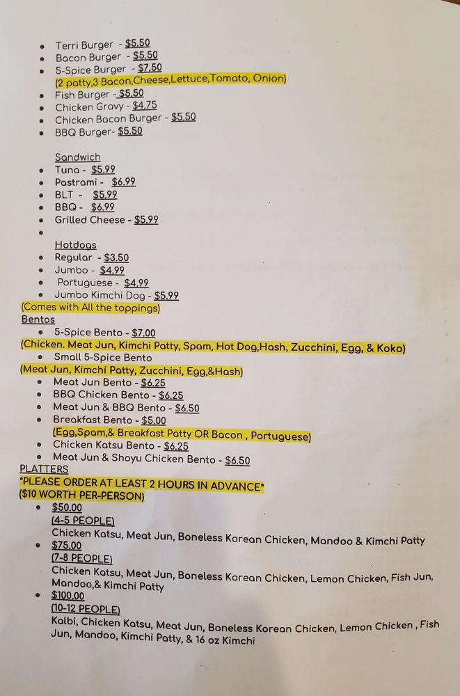 Inside a rare authentic "crackseed store" and amongst its confections is one of the best Take Out local restaurants featuring breakfast lunch and dinner! Huge heavy plates! Local Korean- family owned 5- Spice has it all! Try the Korean fried chicken and Mandoo to go of course!
