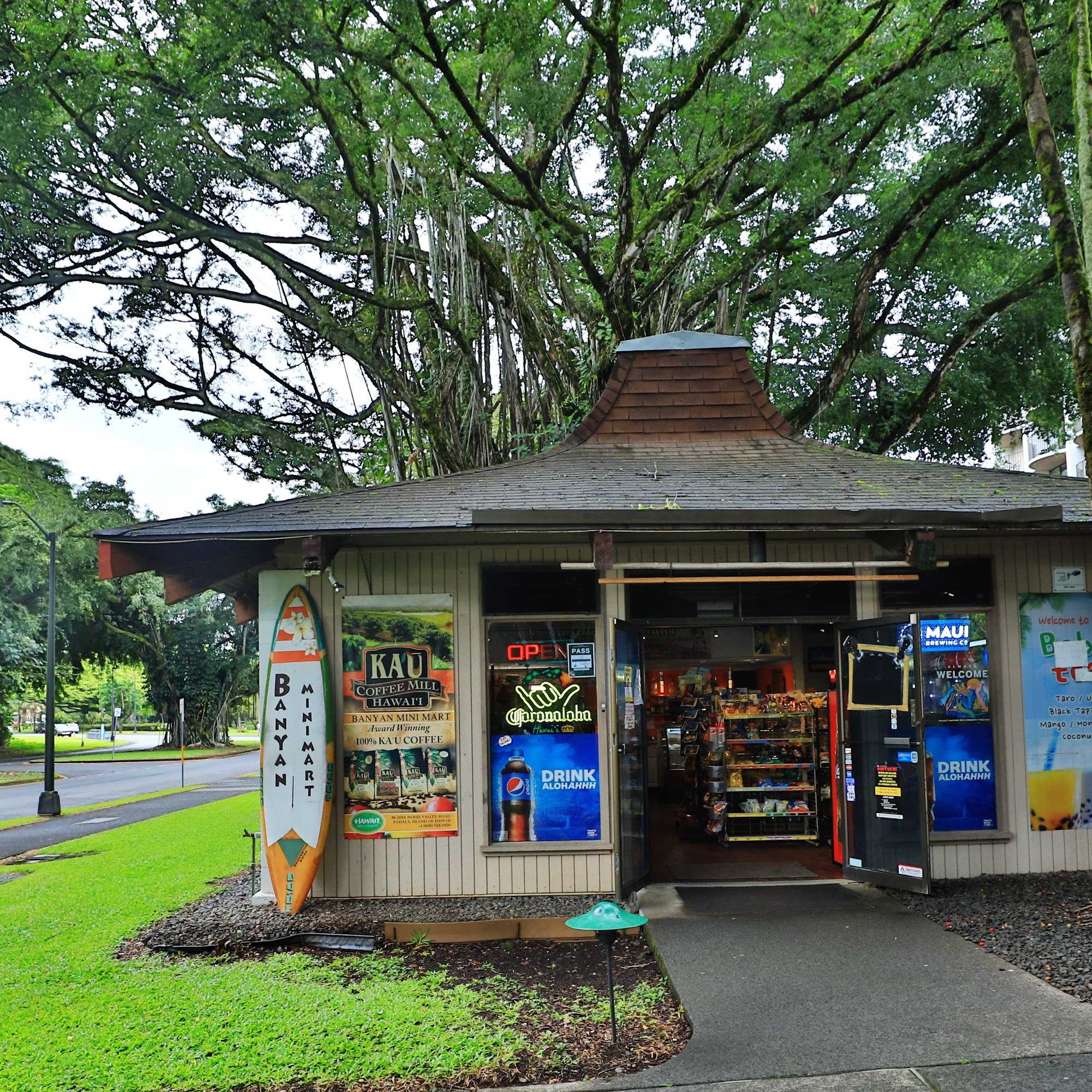 Banyan Mini Mart is a small, convenient store located along Banyan Drive, just across from the Hilo Hawaiian Hotel. Despite its size, it is packed with a variety of items including sundries, jewelry, clothing, and knickknacks. The store offers a small selection of foods such as hot dogs, chili, and beverages like iced teas, with a particular favorite being the Pure Leaf-brand tea for its great flavor. Customers appreciate the friendly service and good prices, making it a popular spot for quickly grabbing essentials, drinks, or souvenirs. The store opens early at 8:00 AM, providing a good option for coffee, bobba tea, or snacks during the morning hours. Its location makes it a handy place to find what is needed, especially for those on a walk or staying nearby. Overall, Banyan Mini Mart is known for its good selection, friendly staff, and convenient location.