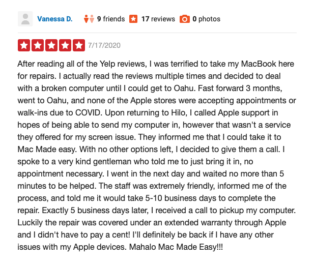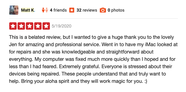 mac made easy hiloprovide excellent service alwaysfriendly n patient staffill always patronize this store for my computer needs